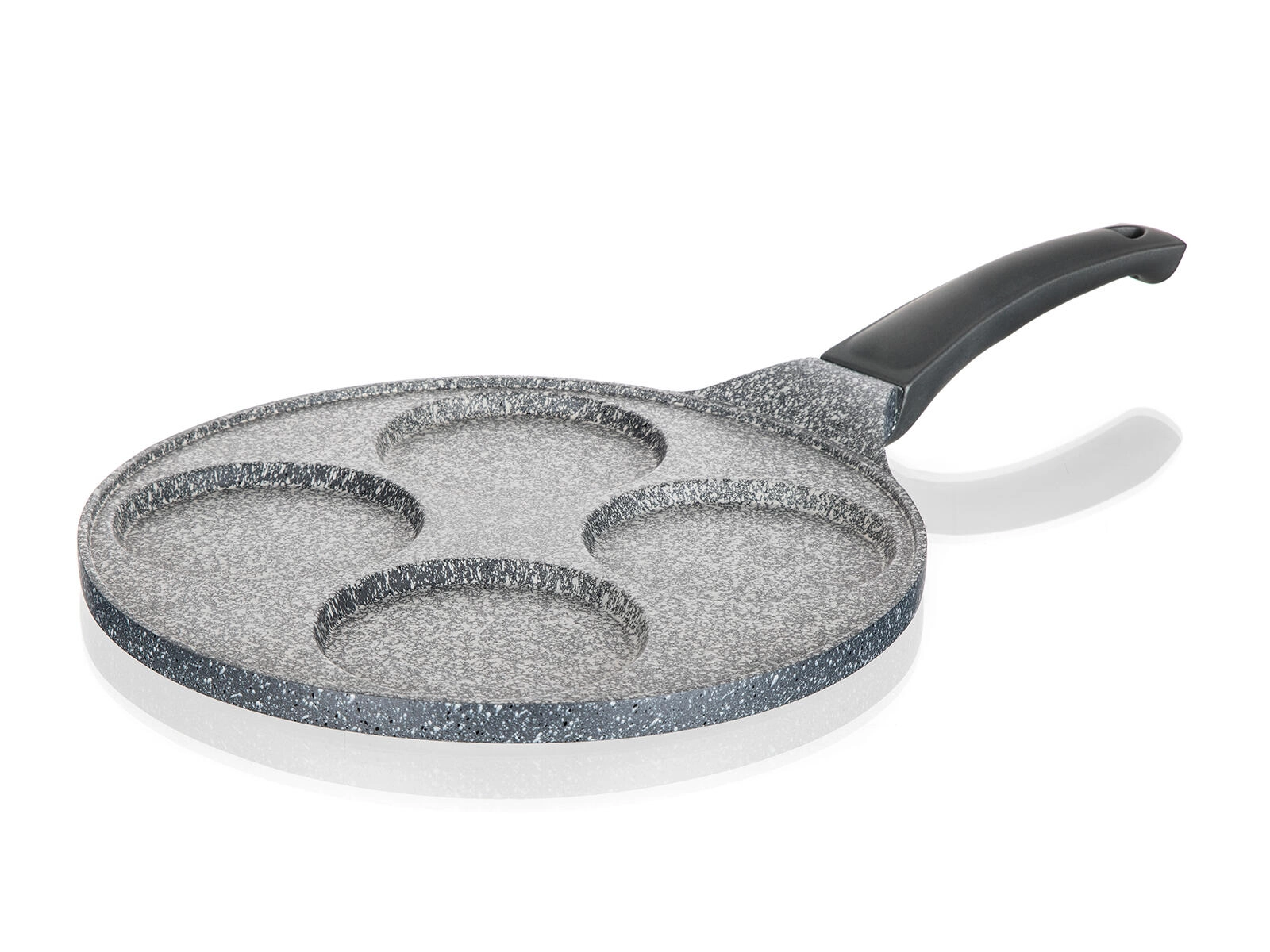 De gegoten aluminium pannenkoekenpan met GRANITE Grey-oppervlak is een uitstekende keuze voor het dagelijkse ontbijt en snelle tussendoortjes. Vier aparte vormen garanderen een gelijkmatige vorm en garing van pannenkoeken, spiegeleieren of aardappelkoekjes, met een minimale hoeveelheid olie dankzij de zeer antiaanbaklaag.