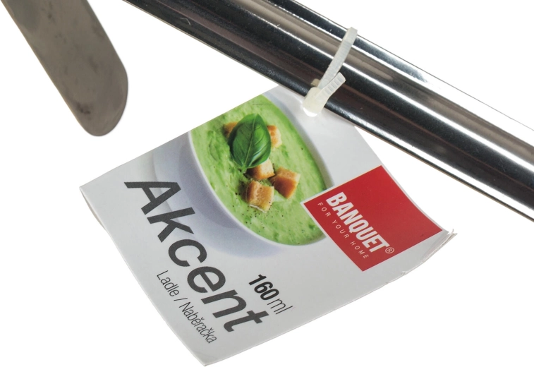 Praktische roestvrijstalen opscheplepel AKCENT met een inhoud van 160 ml en een diameter van 9 cm, ideaal voor het serveren van sauzen, soepen en andere vloeibare gerechten. Dankzij de haak om op te hangen hang je hem eenvoudig aan een rail of aan de rand van de pan. De lepel is gemaakt van hoogwaardig roestvrij staal, heeft een wanddikte van 1 mm en is vaatwasmachinebestendig.