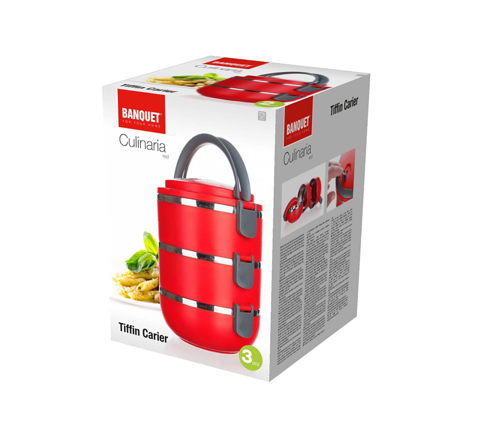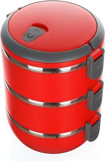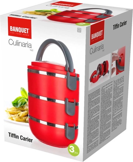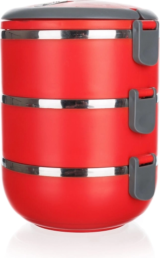 Geniet van comfortabel je lunch meenemen naar werk, school of onderweg. De driedelige voedselcontainer CULINARIA Red biedt drie aparte bakjes (3 × 0,55 l) voor overzichtelijke scheiding van soep, hoofdgerecht en bijgerecht. De binnenkant is van hoogwaardig roestvrij staal 201 voor beter warmtebehoud en eenvoudig reinigen, de buitenmantel van duurzaam polypropyleen beschermt tegen verbranding en verhoogt de robuustheid tijdens transport.