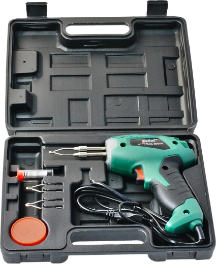 In de set zit een praktische koffer met reserve-soldeerpunten, soldeertin en soldeerpasta – allemaal direct klaar voor gebruik. De 1,5 m lange voedingskabel zorgt voor flexibiliteit en voldoende bewegingsvrijheid in werkplaats en huishouden. Het gereedschap is geschikt voor hobbymatig gebruik en kan ook creatieve technieken aan, zoals pyrografie (patronen in hout branden).