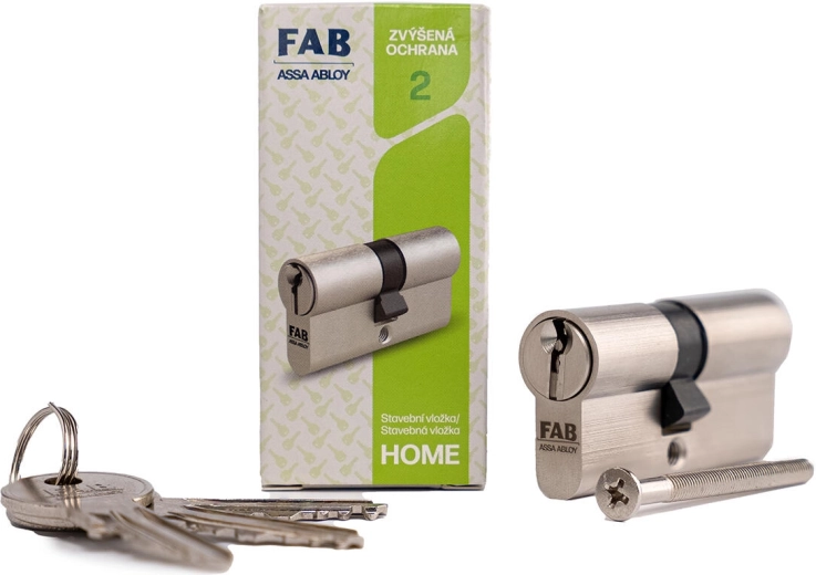 Betrouwbare cilindrische FAB-cilinder voor bouw- en algemeen gebruik met basale beveiligingsklasse, 5-stiften vergrendelingssysteem en 3 verlengde stalen sleutels. Dankzij de maat 30/40 en de nikkelafwerking is het een ideale keuze voor woon- en kantoordeuren.