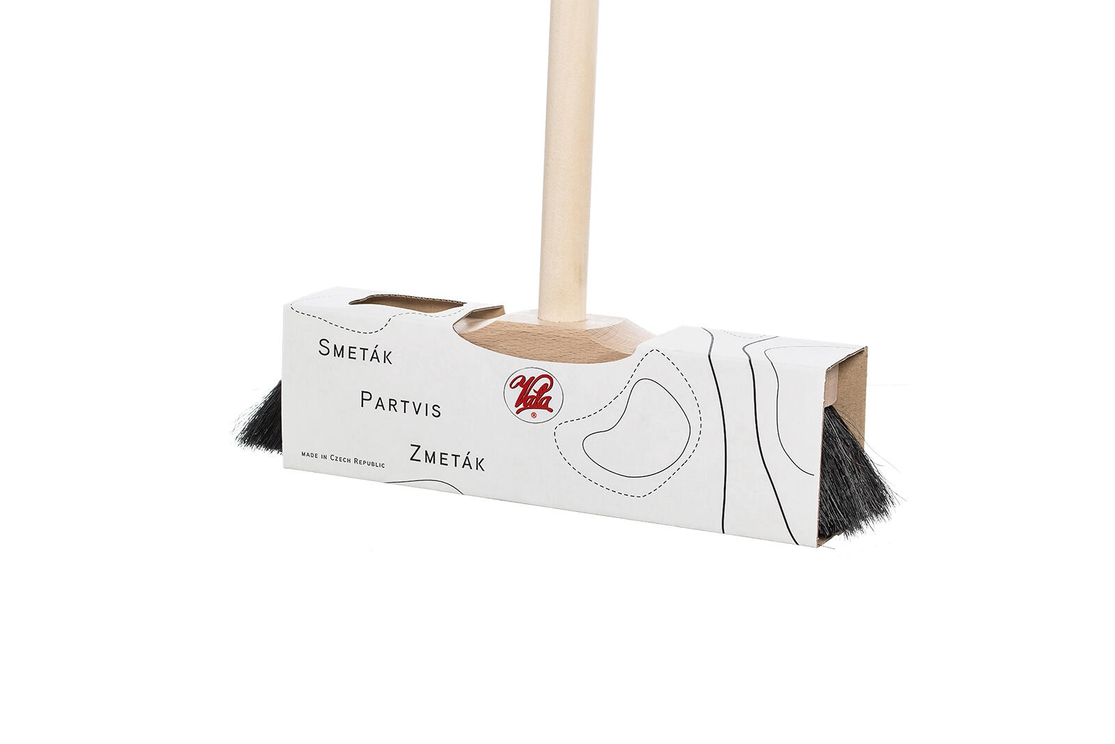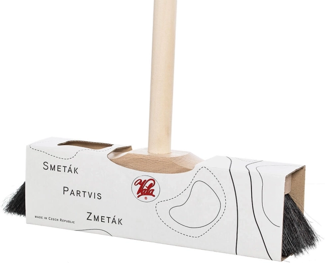 Praktische bezem voor dagelijkse schoonmaak in huis met een breedte van 28 cm en een comfortabele steel van 130 cm. Het ongelakte houten lichaam en een mix van paardenhaar en kunstvezels in een verhouding van 1:1 zorgen voor effectief vegen van fijn stof en grovere vuildeeltjes, een langere levensduur en zachtheid voor vloeren.
