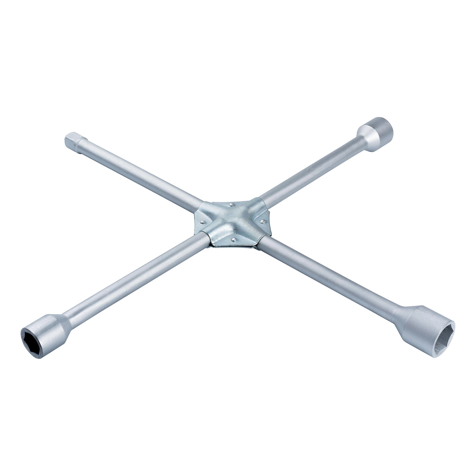 Duurzame kruissleutel voor wielen met vier dopsmaten 17/19/21/23 mm voor snelle bandenwissels en onderhoud. Gemaakt van hoogwaardige staal met een antislip oppervlak voor een veilige en comfortabele grip. Maakt efficiënt aandraaien van bouten mogelijk met voldoende kracht en dekt de meest gangbare wielmoermaten af.