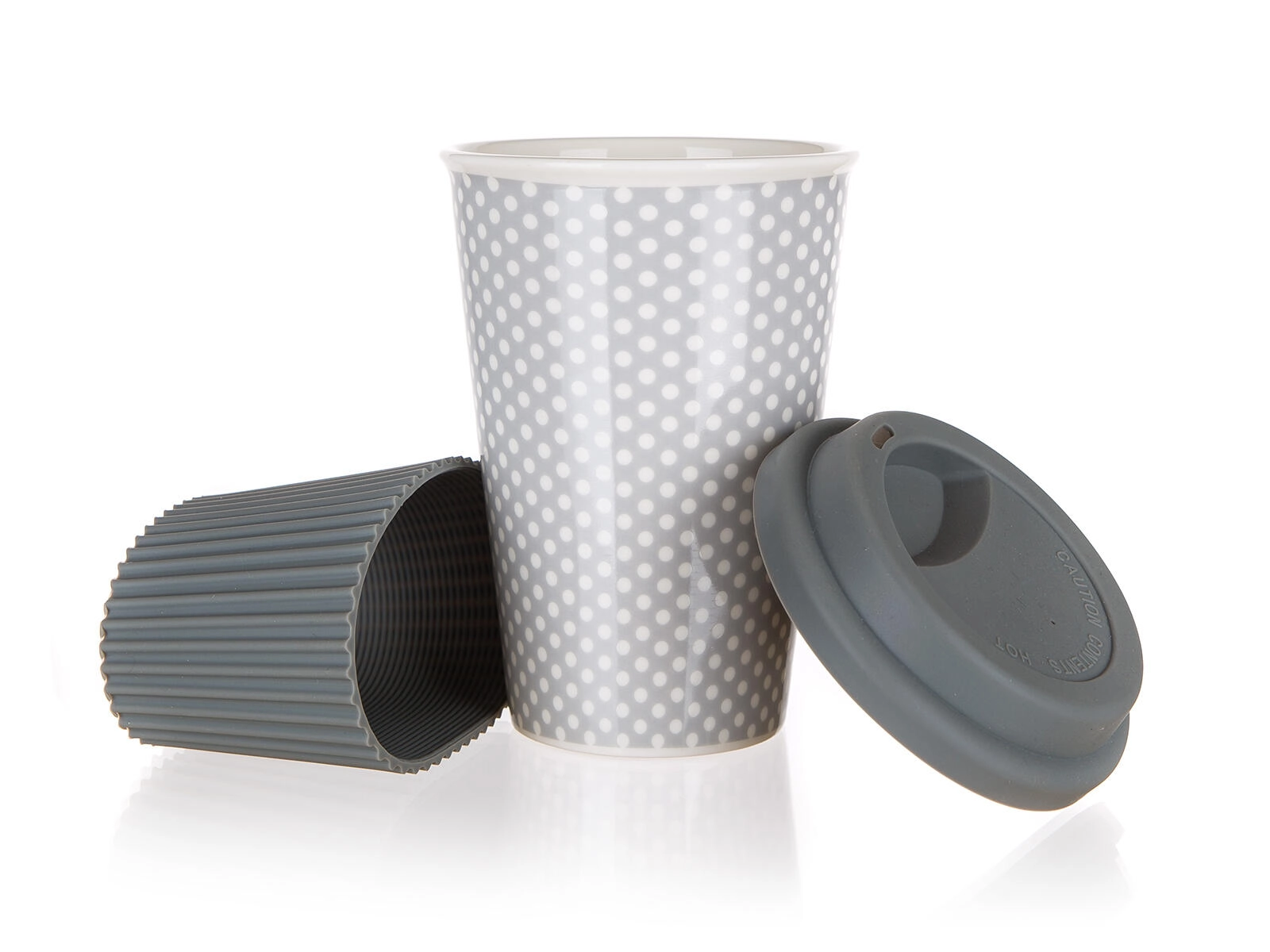 De beker is ontworpen voor dagelijks gebruik – hij is eenvoudig te onderhouden, kan in de vaatwasser en is geschikt voor gebruik in de magnetron. Het minimalistische grijze design met stippen past in kantoor, auto en huis en onderstreept je persoonlijke stijl.