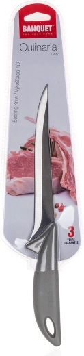 Praktisch uitbeenmes met een lemmetlengte van 18 cm uit de collectie CULINARIA Grey, ideaal voor het precies losmaken van vlees van de botten. Het stalen lemmet zorgt voor een zuivere snede en lange levensduur, terwijl het ergonomische handvat van kunststof een zekere grip en comfortabel werken in de keuken biedt.