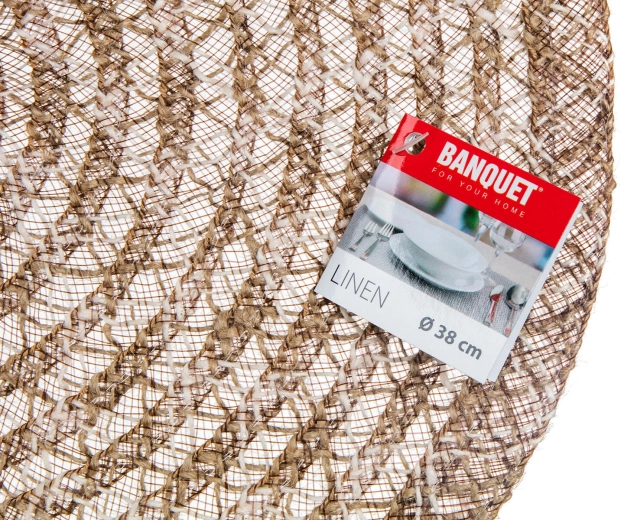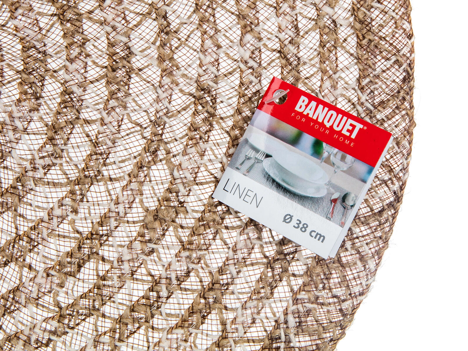 Stijlvolle ronde placemat met een diameter van 38 cm, gemaakt van 80% jute en 20% polyester, geeft je tafel een natuurlijke uitstraling en biedt betrouwbare bescherming. Dankzij de stevige gevlochten structuur is hij duurzaam, onderhoudsvriendelijk en perfect voor dagelijks gebruik én feestelijke tafelschikkingen.