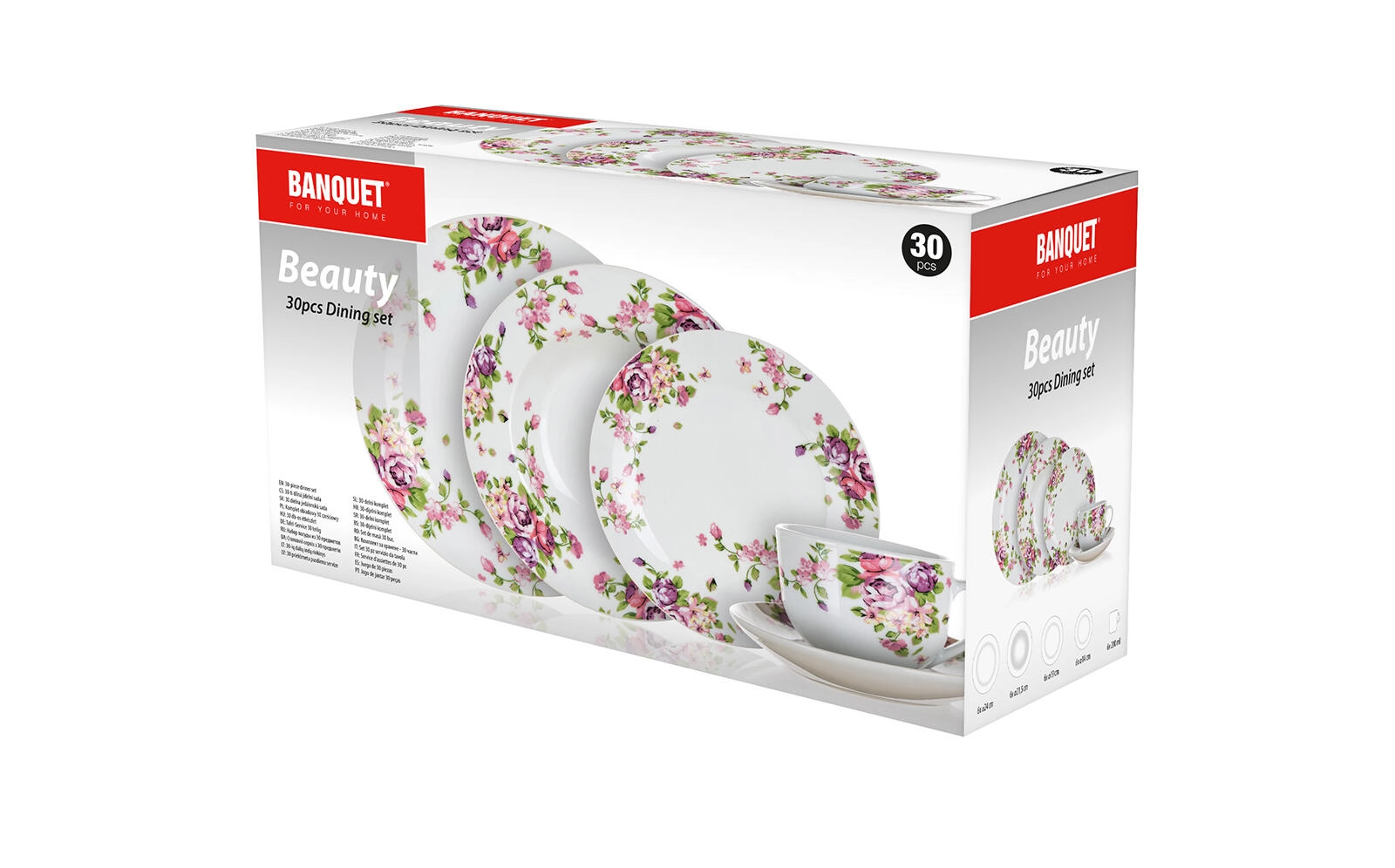 De stijlvolle Beauty-serviesset combineert klassiek wit porselein met een romantisch bloemenmotief dat door alle stukken heen op elkaar is afgestemd. Dankzij de doordachte samenstelling krijgt u borden voor soepen, hoofdgerechten en desserts, aangevuld met kopjes en schoteltjes voor het serveren van koffie of thee.