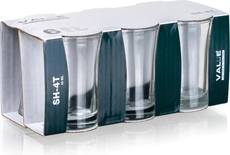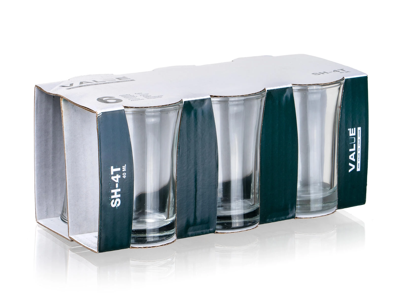 De stijlvolle 40 ml VALUE-shotglaasjes zijn een perfecte keuze voor het serveren van whisky, wodka, rum of likeuren. Hun eenvoudige en tijdloze design past in elk huishouden en in elke baromgeving, terwijl het heldere glas de kleur en zuiverheid van de drank accentueert.
