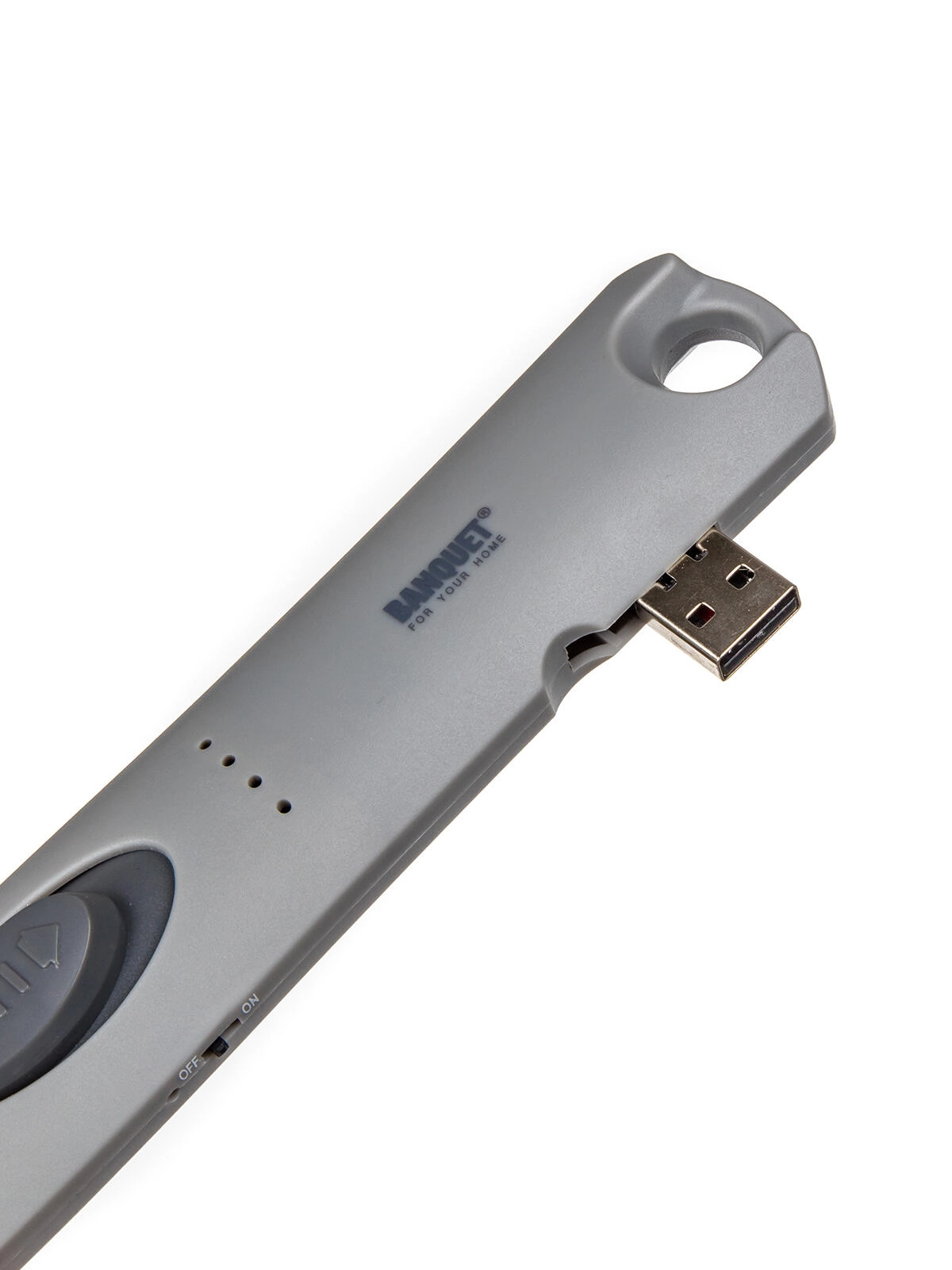 Moderne plasmatische aansteker EXCELLENT met een lengte van 23 cm ontsteekt veilig en comfortabel barbecue, open haard, gasfornuis en kaarsen. Dankzij USB-opladen hoef je geen gas of benzine meer bij te vullen en werkt hij betrouwbaar ook bij wind. Het lange lichaam beschermt de handen tegen hitte en biedt een nauwkeurige plasmavonk precies waar nodig.