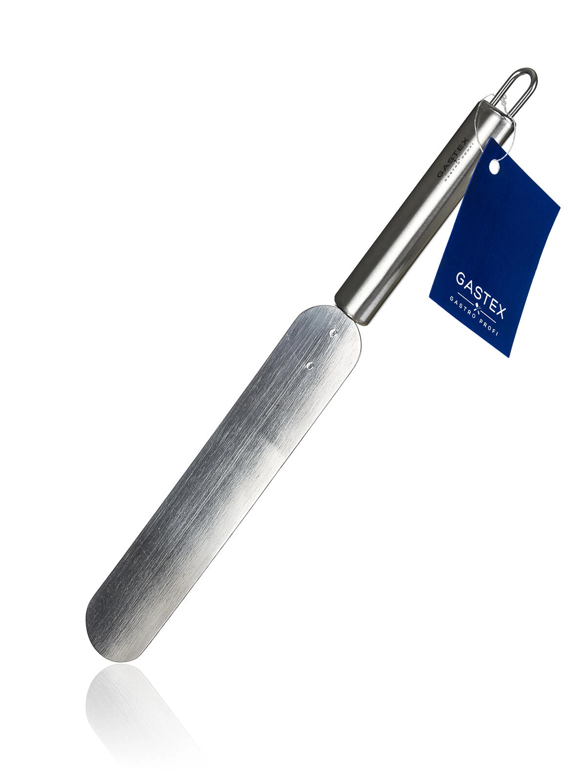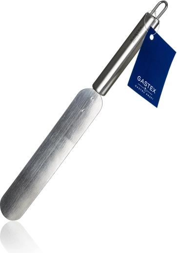 De professionele AZORA spatel van hoogwaardige roestvrij staal maakt het precies uitstrijken van crèmes en glazuren op taarten en gebak eenvoudig. Dankzij de lengte van 30 cm en breedte van 3,5 cm bedekt hij een groter oppervlak, heeft een praktisch ophangoog, is onderhoudsvriendelijk en vaatwasmachinebestendig. De GASTEX-lijn is ontworpen voor professionals en thuisbakkers.