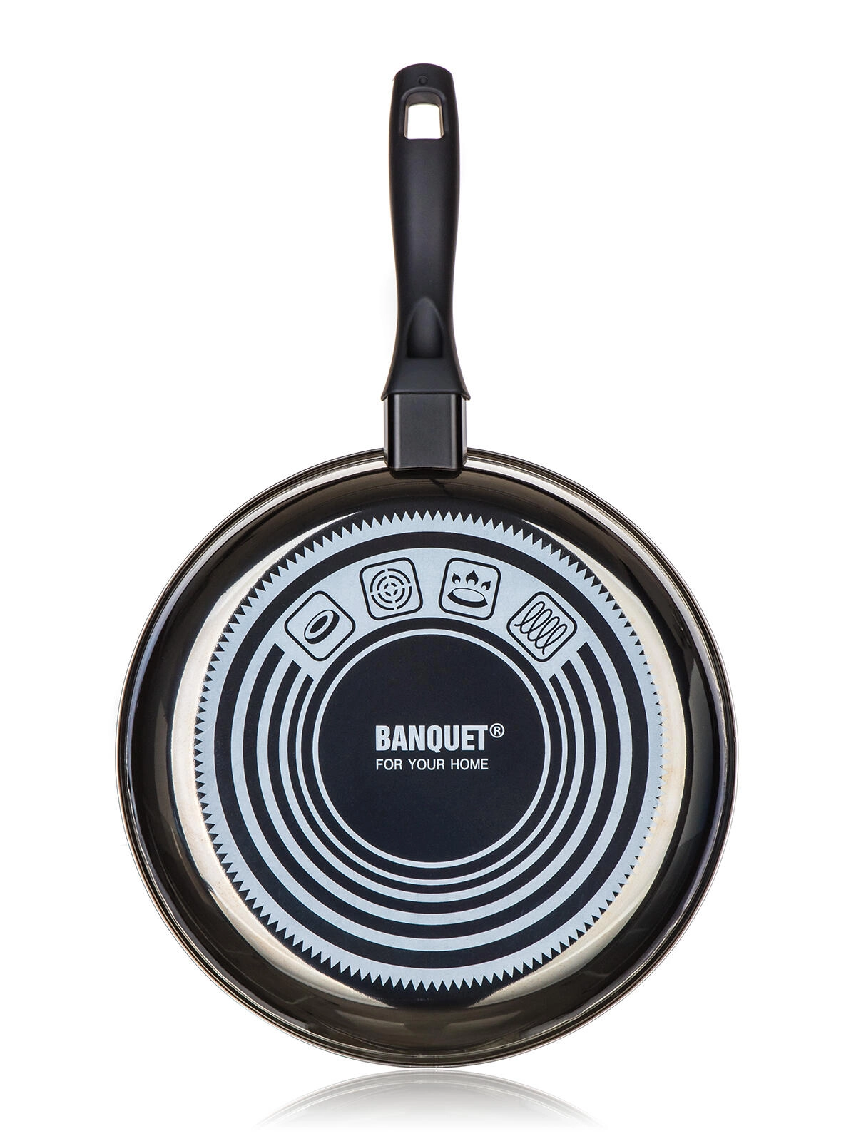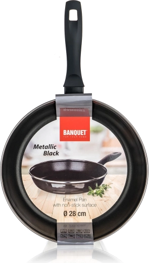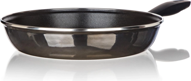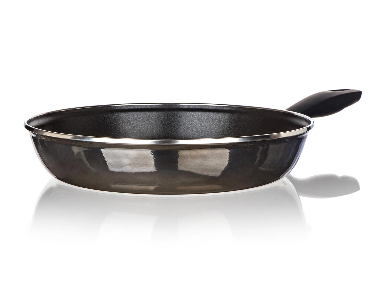 Email verlengt de levensduur van de pan, vergemakkelijkt het onderhoud en geeft een elegante look in zwarte metallic.