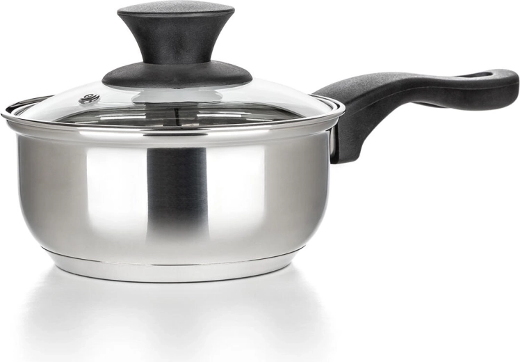 Inhoud van de set: steelpan 14 × 7 cm met glazen deksel; pannen 16 × 8 cm, 18 × 9 cm en 22 × 11 cm – allemaal met glazen deksels. Ideale keuze voor je eerste keuken of als betrouwbare vervanging van je huidige uitrusting.