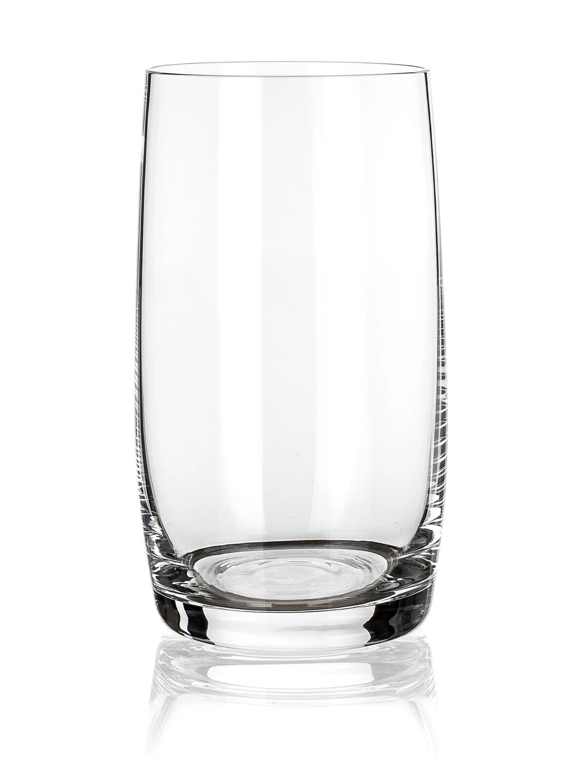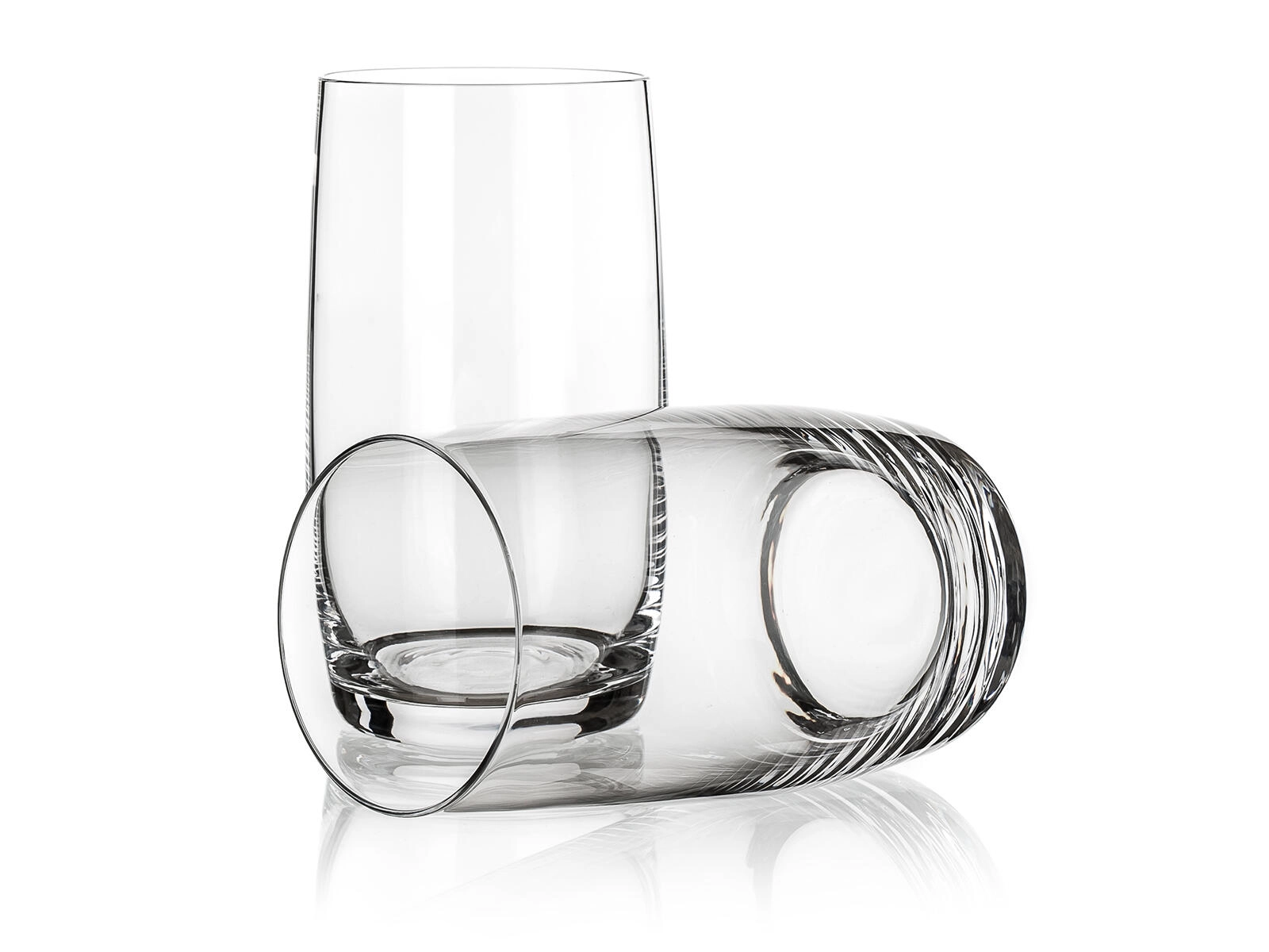 De gladde, rechte wanden en kristalheldere transparantie laten water, sappen en cocktails prachtig uitkomen en passen op elke tafel.