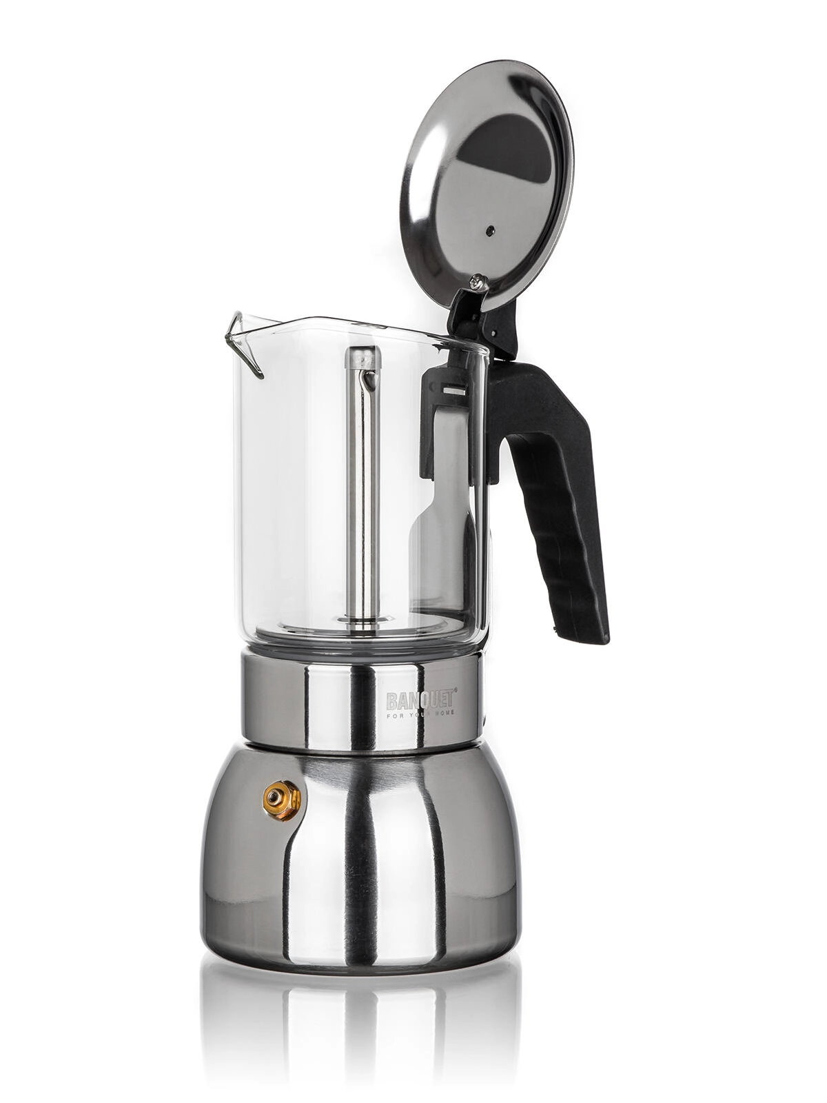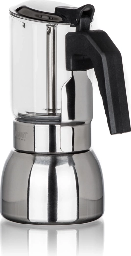 De inhoud van 200 ml is voldoende voor 4 kleine kopjes intense koffie in espresso-stijl. Het potje werkt betrouwbaar op alle gangbare kookplaten, inclusief inductie, en is uitgerust met een veiligheidsventiel voor stabiele druk en zorgeloze bereiding.