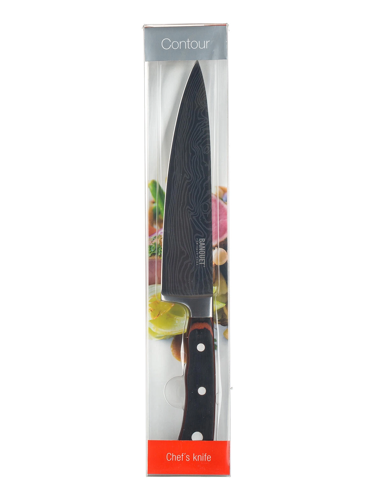 Universeel koksmes Contour met een 20 cm lemmet van hoogwaardig roestvrij staal, ideaal voor dagelijks snijden, hakken en portioneren. De ergonomische vorm zorgt voor een zekere grip en precieze snedes, onmisbaar bij het koken.
