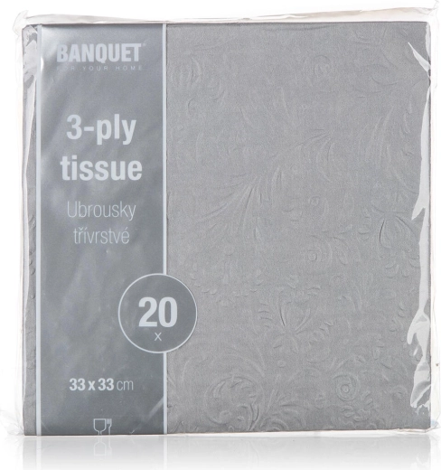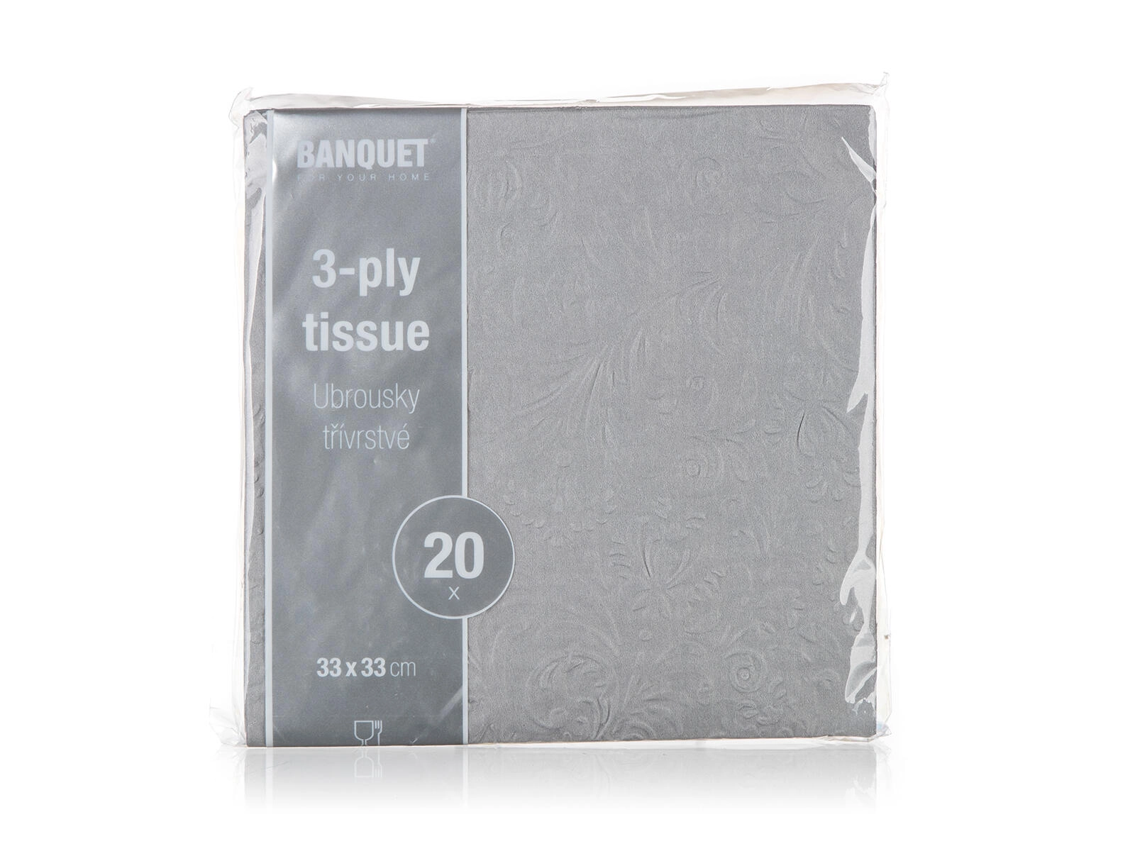 Papieren servetten 33 × 33 cm, grijs, 3-laags, reliëf, 20 stuks