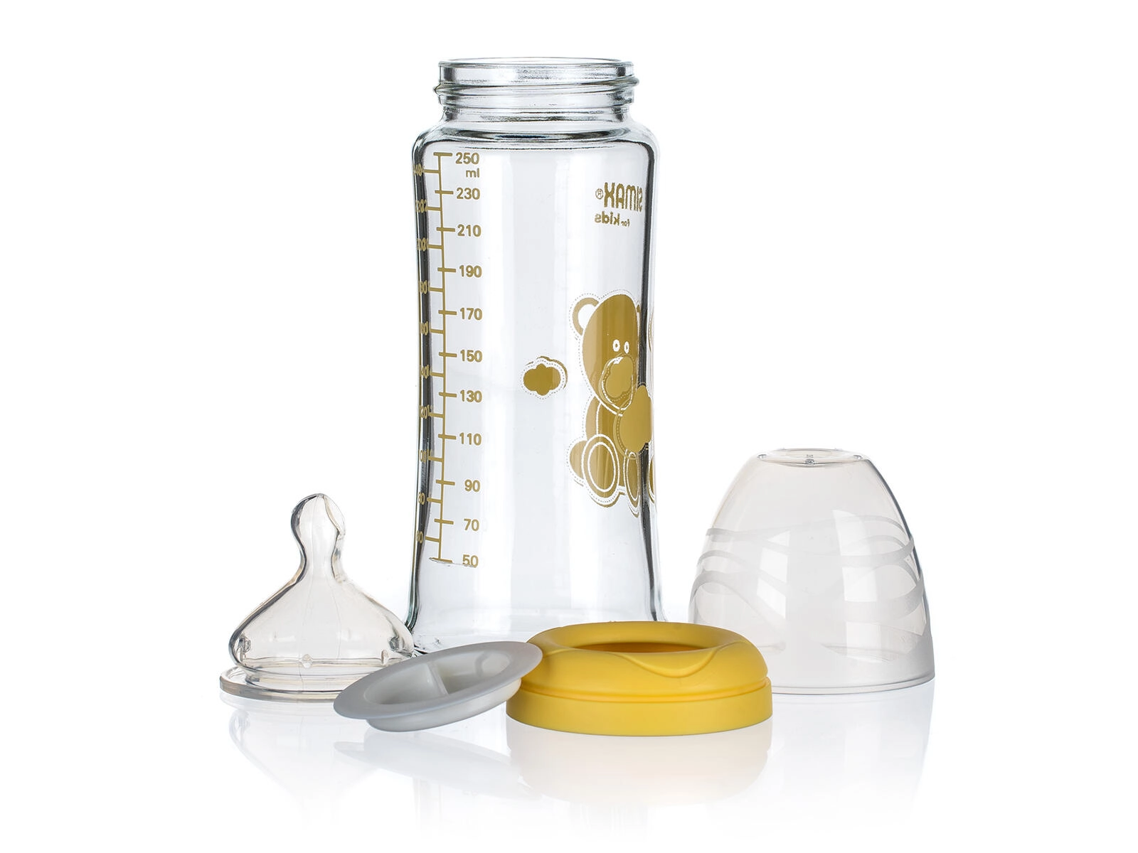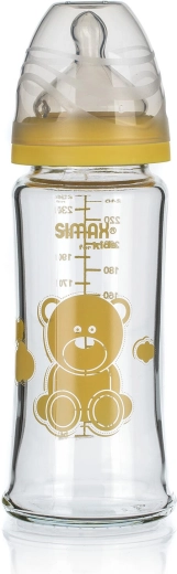 De brede glazen babyfles van 250 ml is gemaakt van hard borosilicaatglas, dat uitblinkt in zowel mechanische als thermische bestendigheid. Daardoor is ze ideaal voor het veilig geven van melk en andere vloeistoffen, zowel thuis als onderweg. Glas neemt geen geuren of smaken op en is 100% hygiënisch veilig.