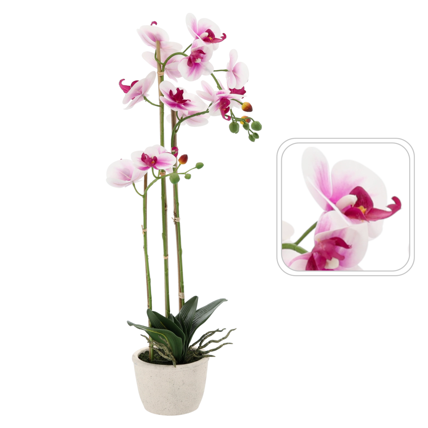 Kunstorchidee wit‑roze 70 cm in pot