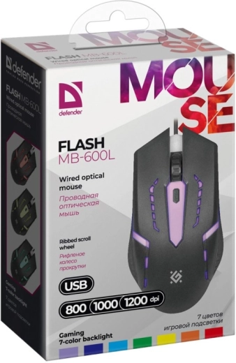 Bedrade gamingmuis DEFENDER Flash MB-600L met 7-kleurenverlichting