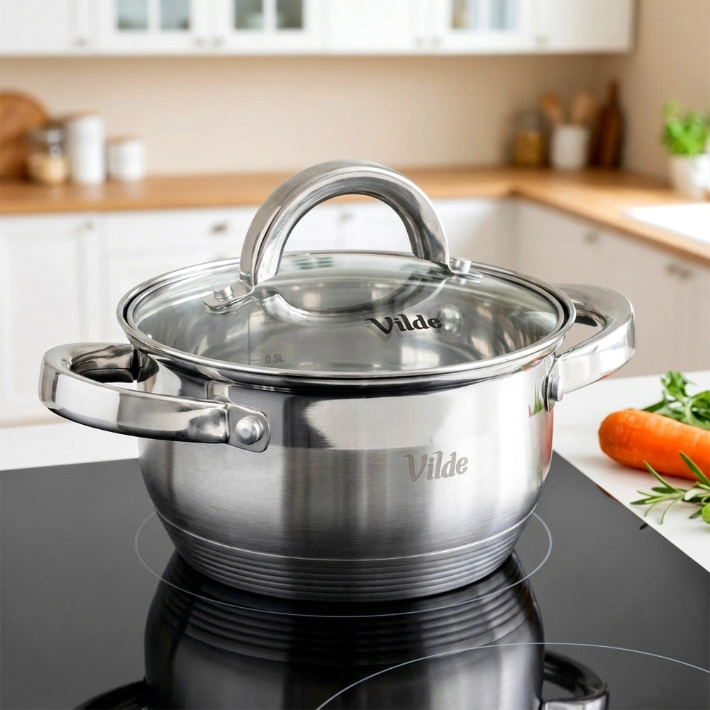 - Duurzame materialen: roestvrij staal, deksel van gehard glas, roestvrijstalen rand en greep.