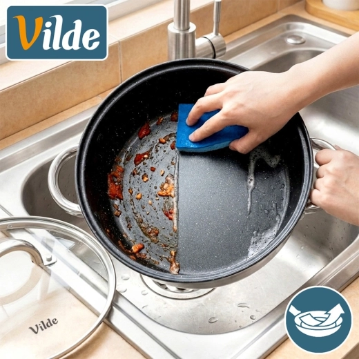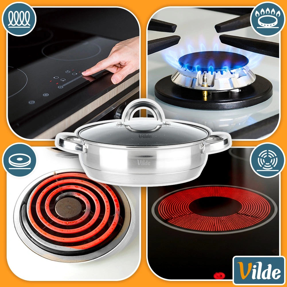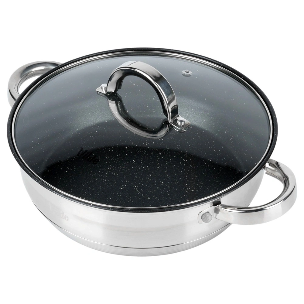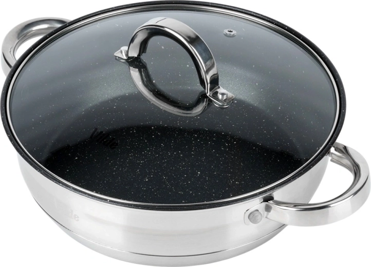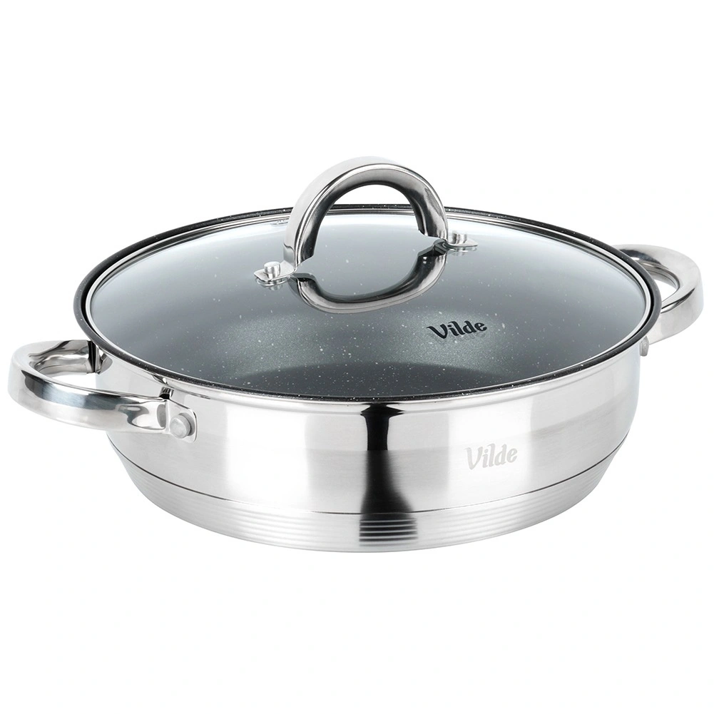 De binnenzijde van de pan is voorzien van een duurzame antiaanbaklaag met granietlook, de buitenzijde combineert mat en hoogglans afwerking. Het product voldoet aan Europese kwaliteitsnormen. Origineel product van het merk Vilde uit de INOXCELLENT-lijn.