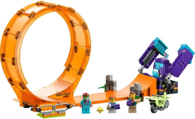 Betreed de wereld van stunthelden met de LEGO City Chimpansee-stuntlus. De imposante reusachtige loop, werkende schans en mechanische chimpansee vormen het decor voor spannende stunts. De motor met vliegwiel schiet bliksemsnel weg en kan zelfs veeleisende flips door de loop aan.