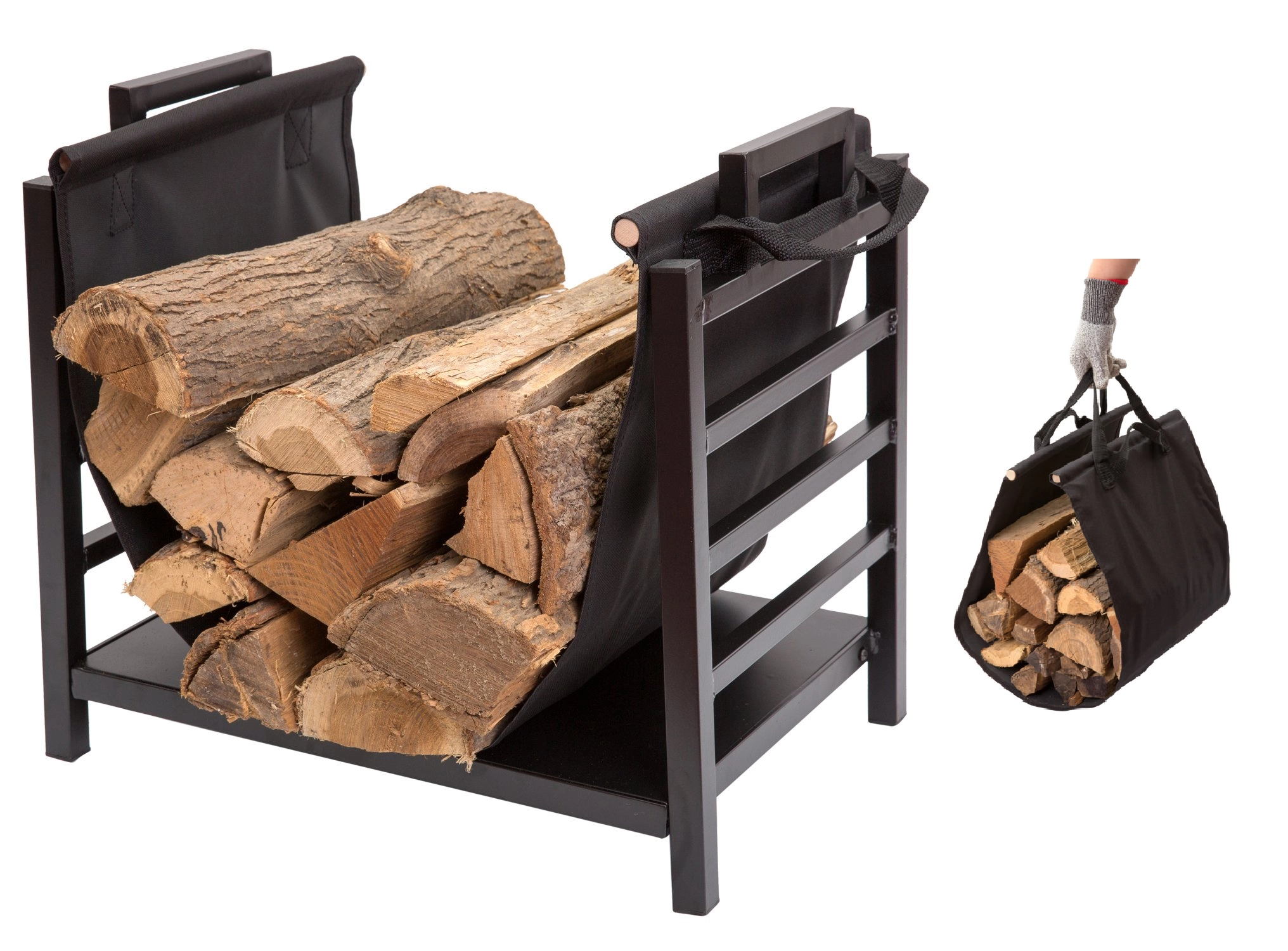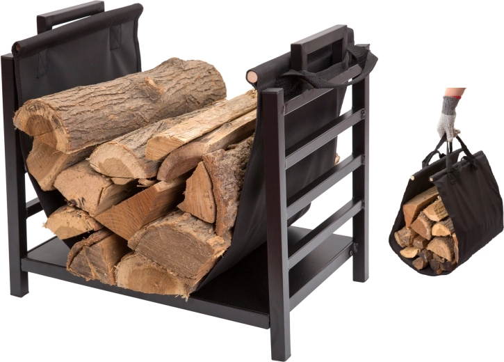 De geïntegreerde handgreep en de inleg beschermen de vloer tegen splinters en stof. Het hout blijft geordend en altijd binnen handbereik bij de haard.