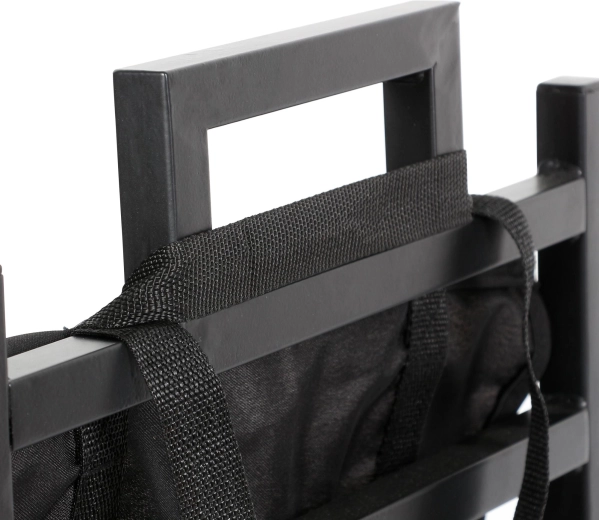 Dankzij de geïntegreerde handgrepen en de doordachte vorm is het rek gemakkelijk te verplaatsen en staat het mooi in zowel moderne als traditionele interieurs. De zwarte kleur is tijdloos, onderhoudsvriendelijk en past bij haardgereedschap en decoraties.