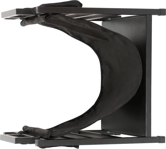 De textiele inleg fungeert als een praktische drager – u tilt deze eenvoudig op aan de riemen, brengt de houtblokken naar binnen en plaatst hem daarna weer in het rek.