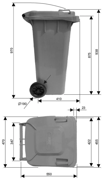 Een ergonomische greep en twee stevige wielen maken eenvoudige verplaatsing mogelijk, zelfs bij maximale belasting. Versterkte randen en ribben verhogen de stabiliteit en draagkracht van de container, zodat dagelijkse afvalinzameling probleemloos verloopt.