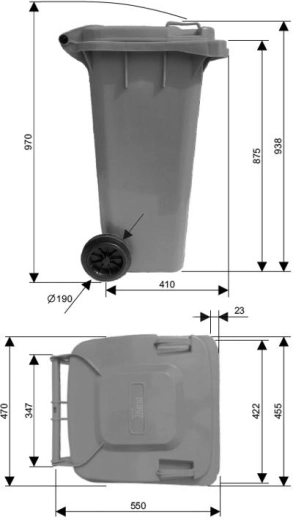 Praktische en robuuste container van kwaliteitskunststof, ideaal voor de dagelijkse afvalinzameling bij eengezinswoningen, bedrijven en faciliteiten. De lichte constructie in combinatie met slijtvaste wielen garandeert comfortabel verplaatsen op de stoep en op oneffen ondergrond. Het afdichtende deksel helpt geuren te beperken en houdt ongedierte buiten.