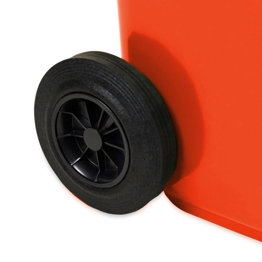 Twee robuuste wielen zorgen voor soepel verplaatsen naar de stoep, ook over oneffen terrein. Het lage gewicht van de container spaart krachten bij dagelijks gebruik.