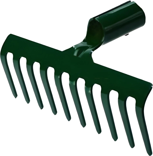 Deze hoogwaardige metalen hark zonder steel is een betrouwbare hulp voor elke tuinier. Dankzij de 10 stevige tanden hark je efficiënt bladeren, takjes en grovere verontreinigingen bijeen en helpt hij tevens bij het bewerken en egaliseren van de bodem. De duurzame ijzeren constructie zorgt voor een lange levensduur, ook bij frequent gebruik.