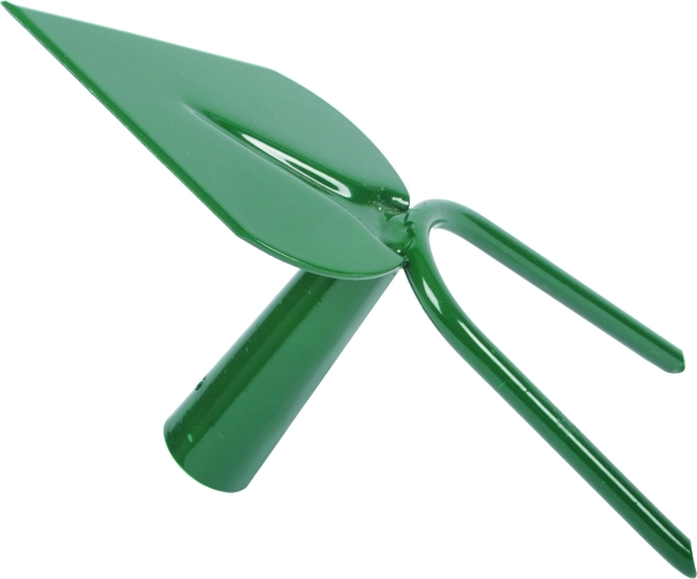 Praktische handhak in hartvorm met twee tanden voor snel en nauwkeurig wieden en beluchten van de bodem rond planten. Dankzij de compacte vorm komt hij gemakkelijk op smalle plekken en vereenvoudigt het onderhoud van bloembedden. De variant zonder steel maakt het mogelijk een handgreep naar eigen voorkeur te kiezen.