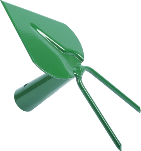 Praktische handmatige hartvormige schoffel met twee tanden, ideaal voor het verwijderen van onkruid en het losmaken van de grond rondom planten. De lichte en duurzame constructie zonder steel maakt eenvoudig hanteren en nauwkeurig werken in borders mogelijk.
