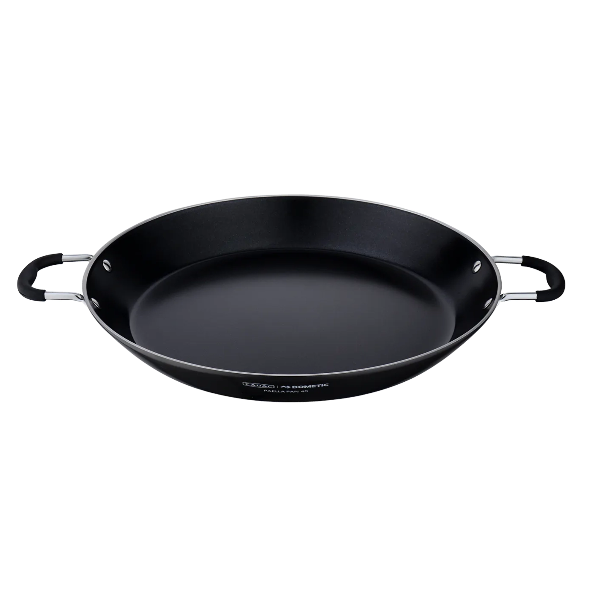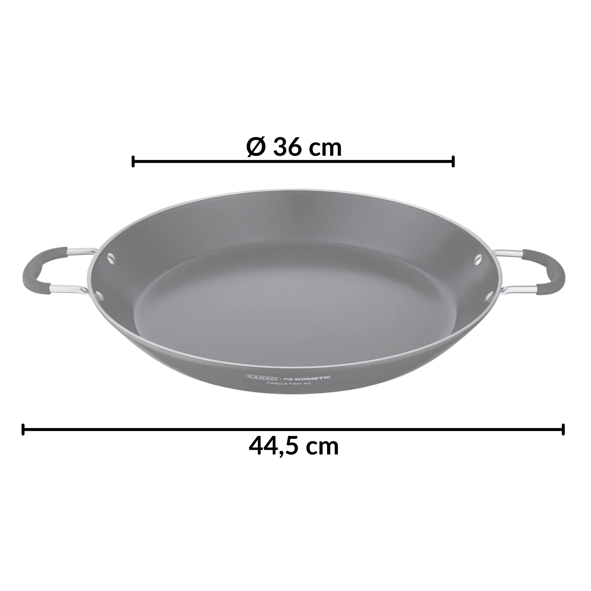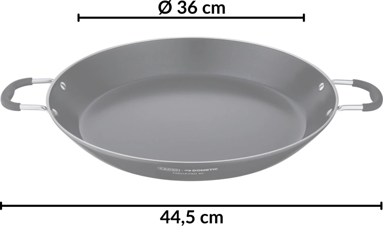 Lichte maar duurzame CADAC-paellapan met een diameter van 36 cm, ideaal voor het bereiden van paella, risotto, pasta en ontbijt. Biedt een hoogwaardige antiaanbaklaag, snelle en gelijkmatige warmteverdeling en eenvoudige reiniging. Dankzij de roestvrijstalen handgrepen is hij makkelijk te dragen en past hij perfect op CADAC Citi Chef 40- en Carri Chef 40-grills en op de meeste gasbranders.