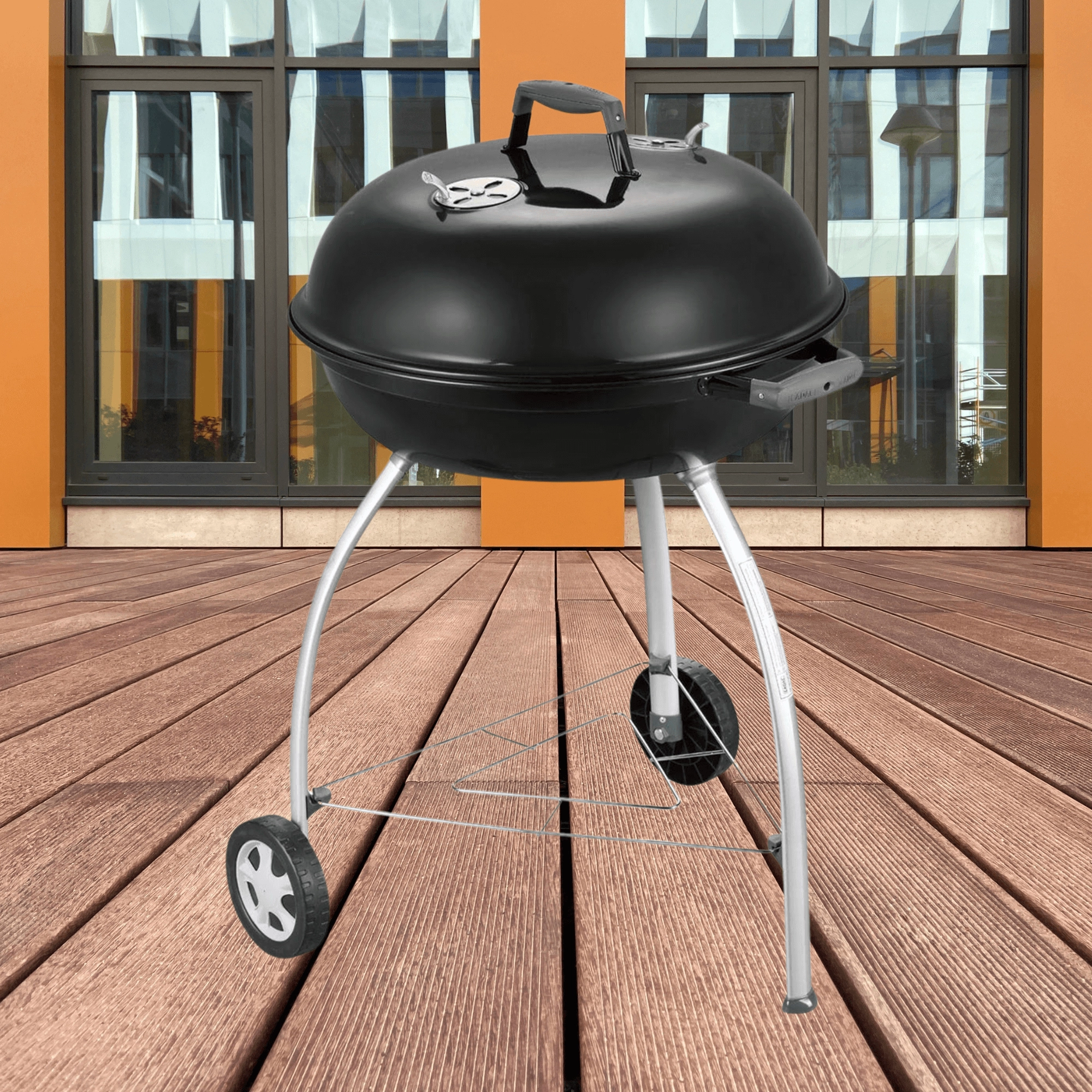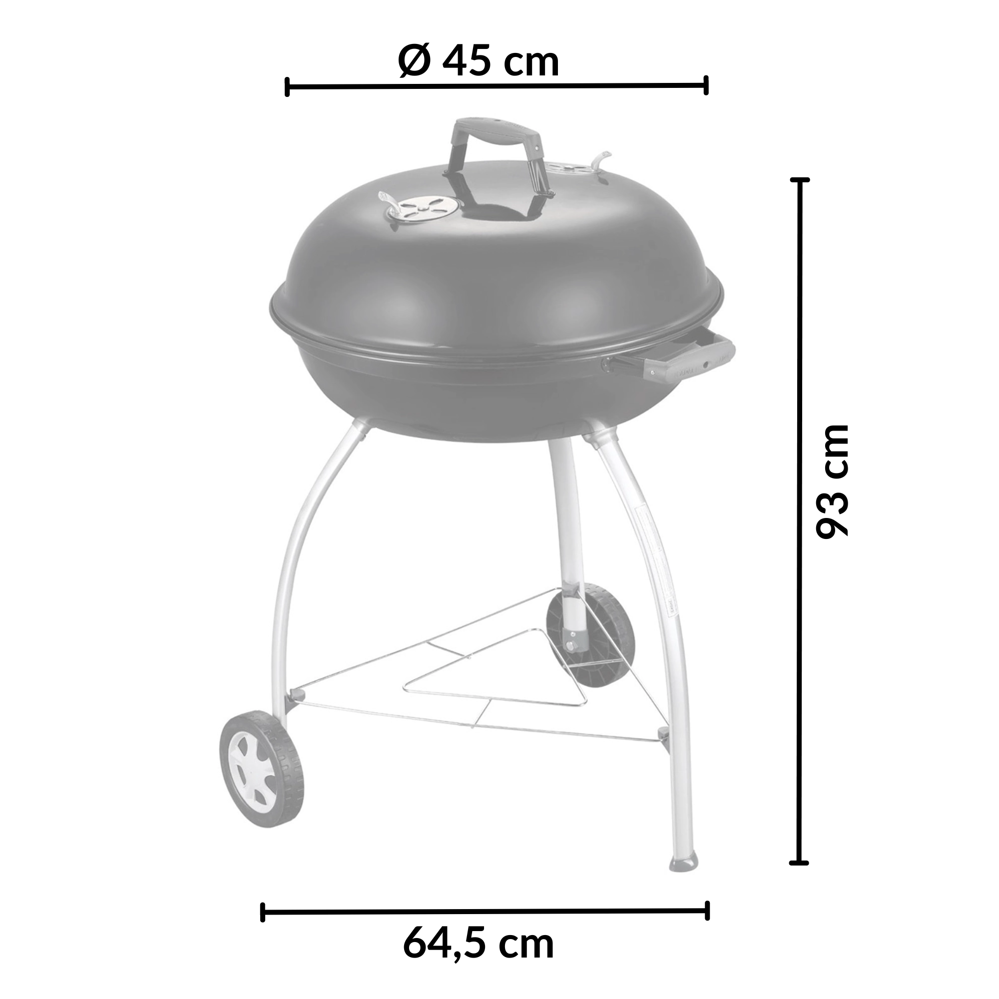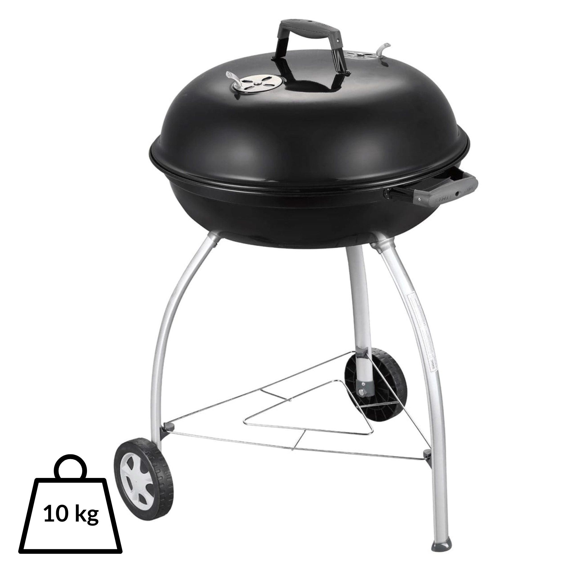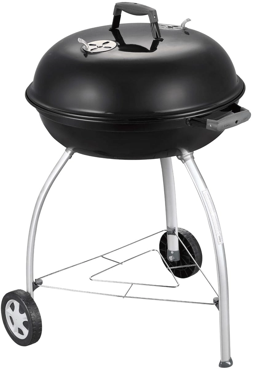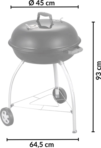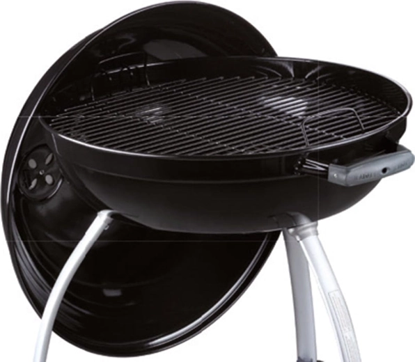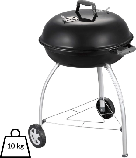 Dankzij het ruime oppervlak van 54 cm bereidt u sappige steaks, groenten en complete porties voor familie en vrienden. Omgevouwen, met email bedekte randen beschermen tegen corrosie, en de praktische handgreep in het deksel kan aan de ketel worden gehaakt als windscherm. Twee wielen en drie stevige poten zorgen voor stabiliteit en eenvoudige mobiliteit op terras of in de tuin.