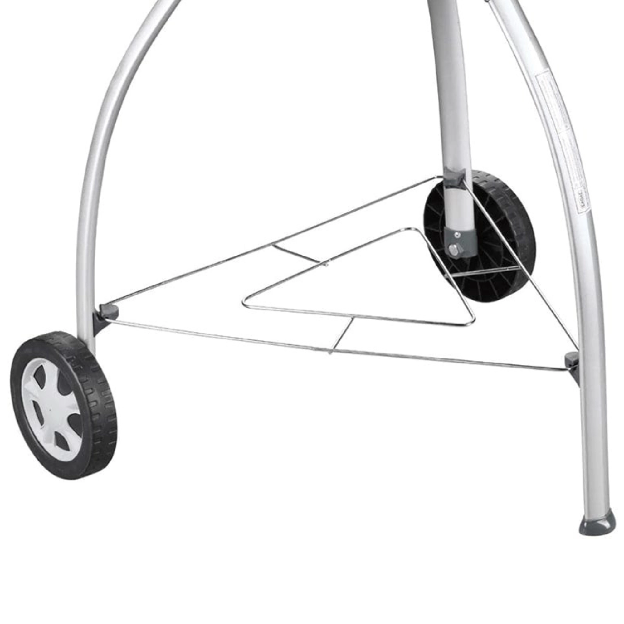 Twee wielen voor comfortabel verplaatsen in de tuin en drie stevige poten met een verstevigingsplank voor stabiel grillen.