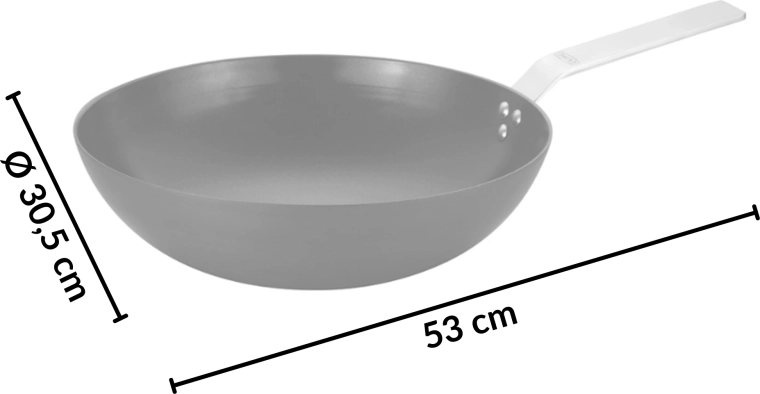 De ergonomische handgreep van roestvrij staal biedt een zekere grip en veilige handling op zowel het fornuis als de grill. De diepe wokvorm maakt het eenvoudig om te roeren en grotere porties te roerbakken.