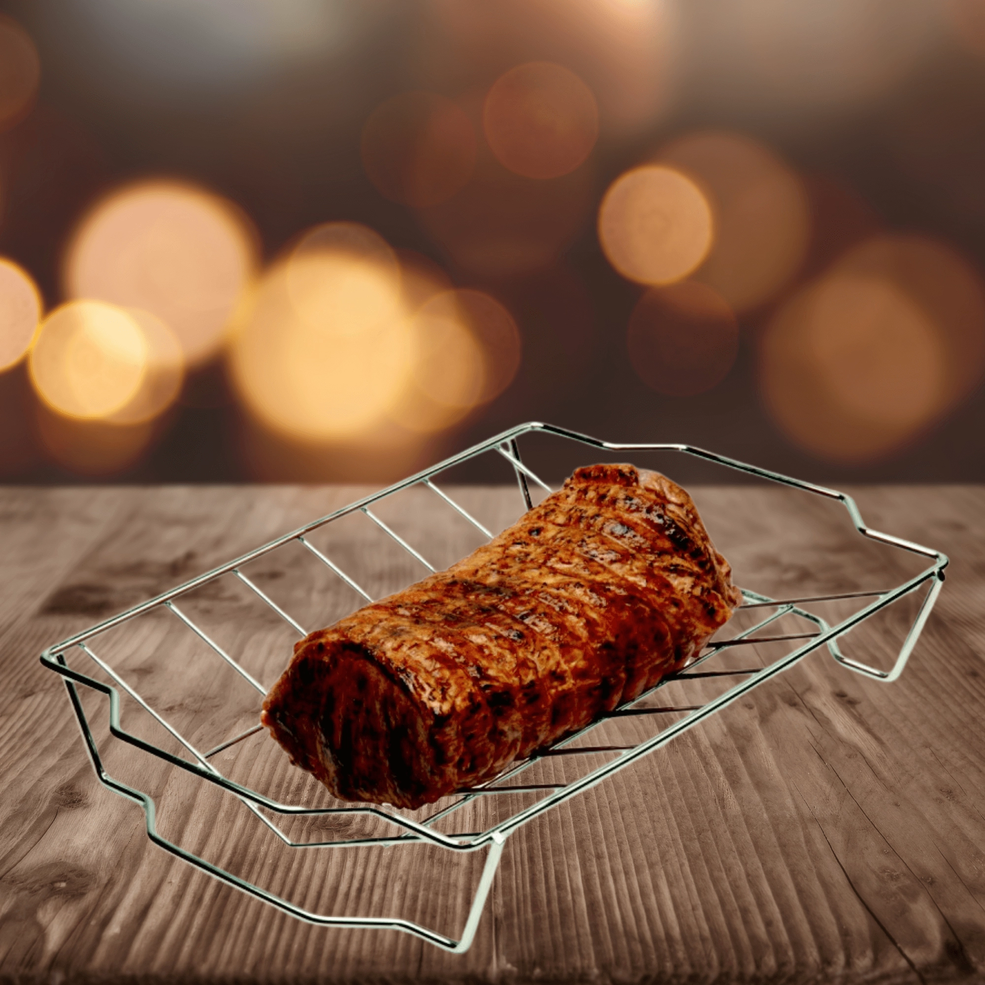 Universeel rooster van hoogwaardige roestvrijstalen voor grill en oven zorgt voor gelijkmatige garing, afvoer van sappen en eenvoudige handling dankzij de zijhandgrepen. Ideaal voor vlees, gevogelte, vis en groenten.