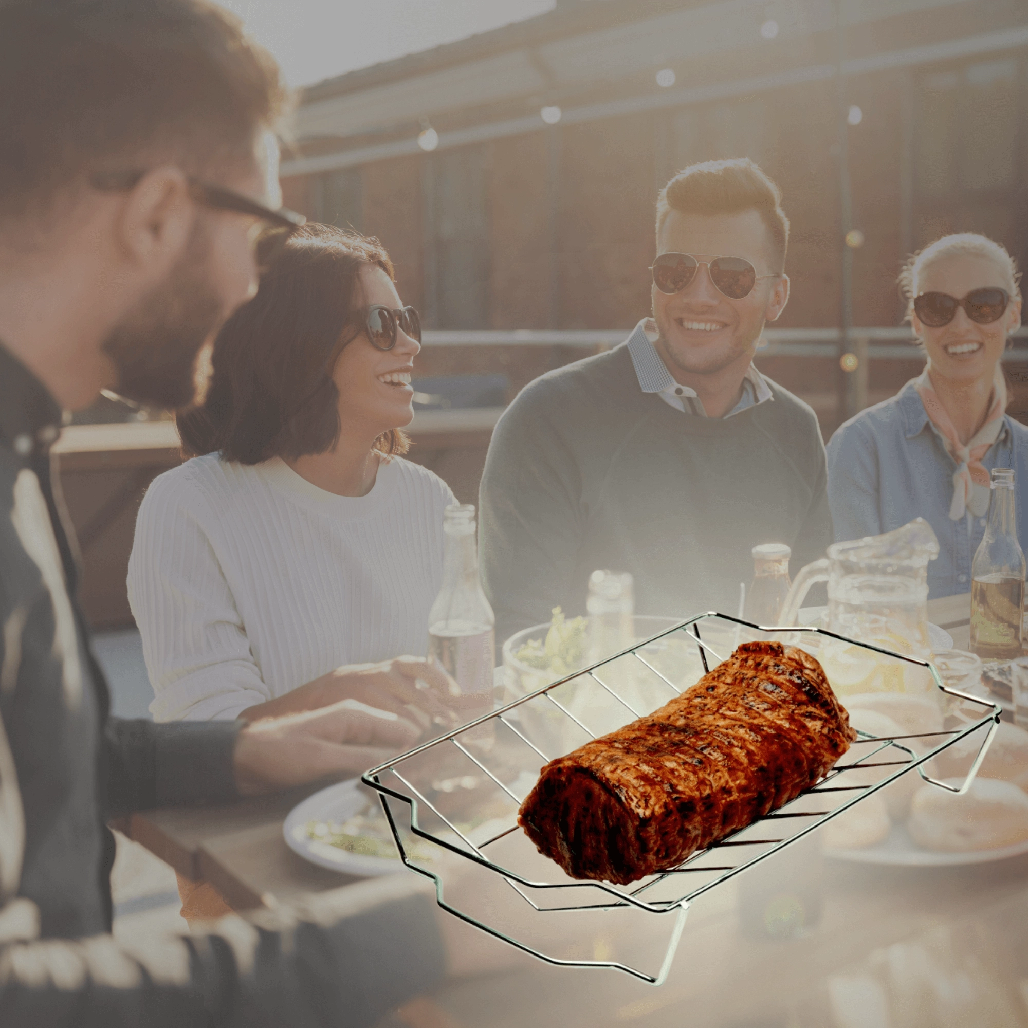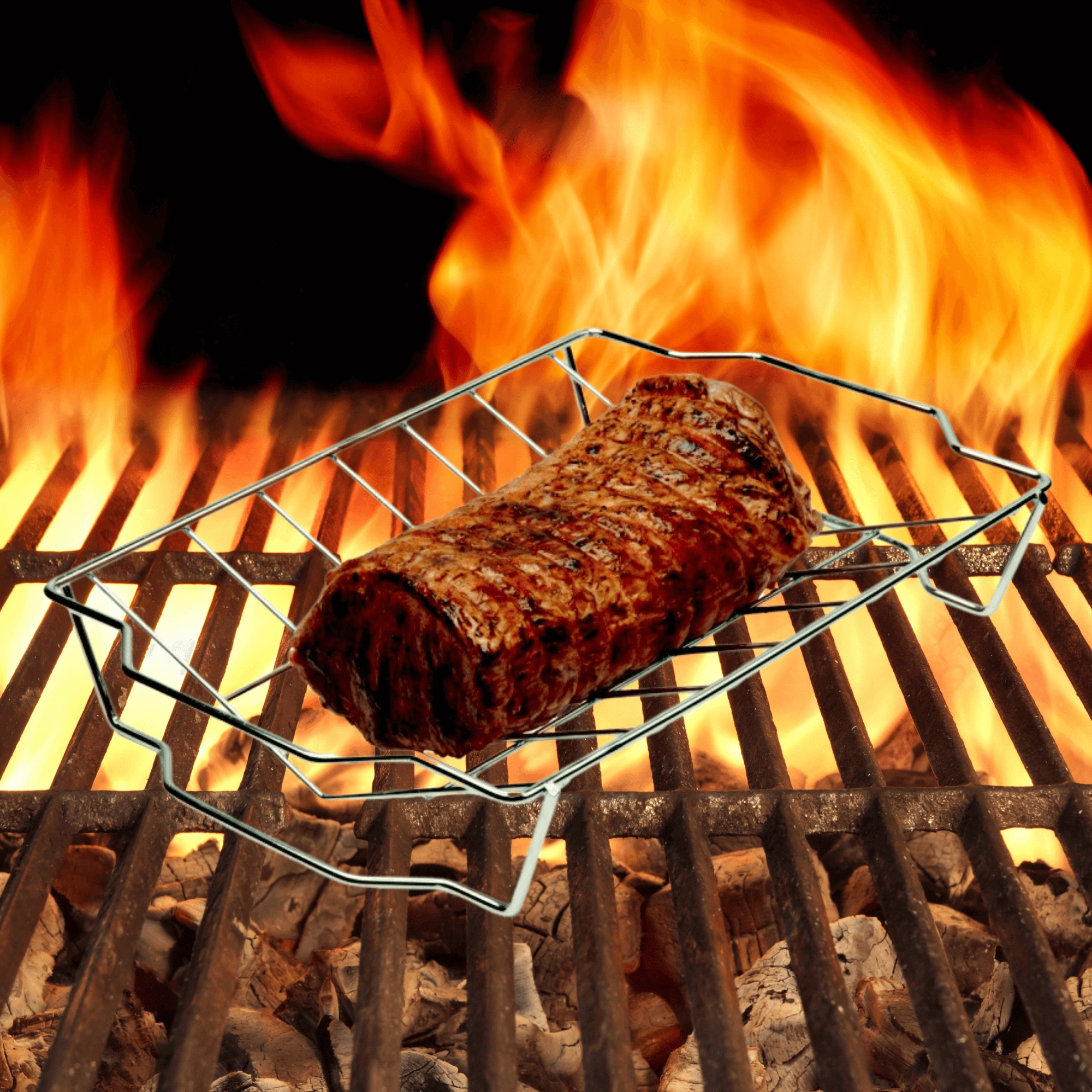 De open constructie van het rooster zorgt voor optimale warmtecircultie, zodat vlees en groenten gelijkmatig garen en sappig blijven.