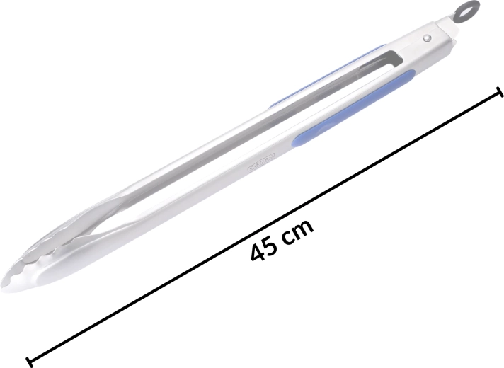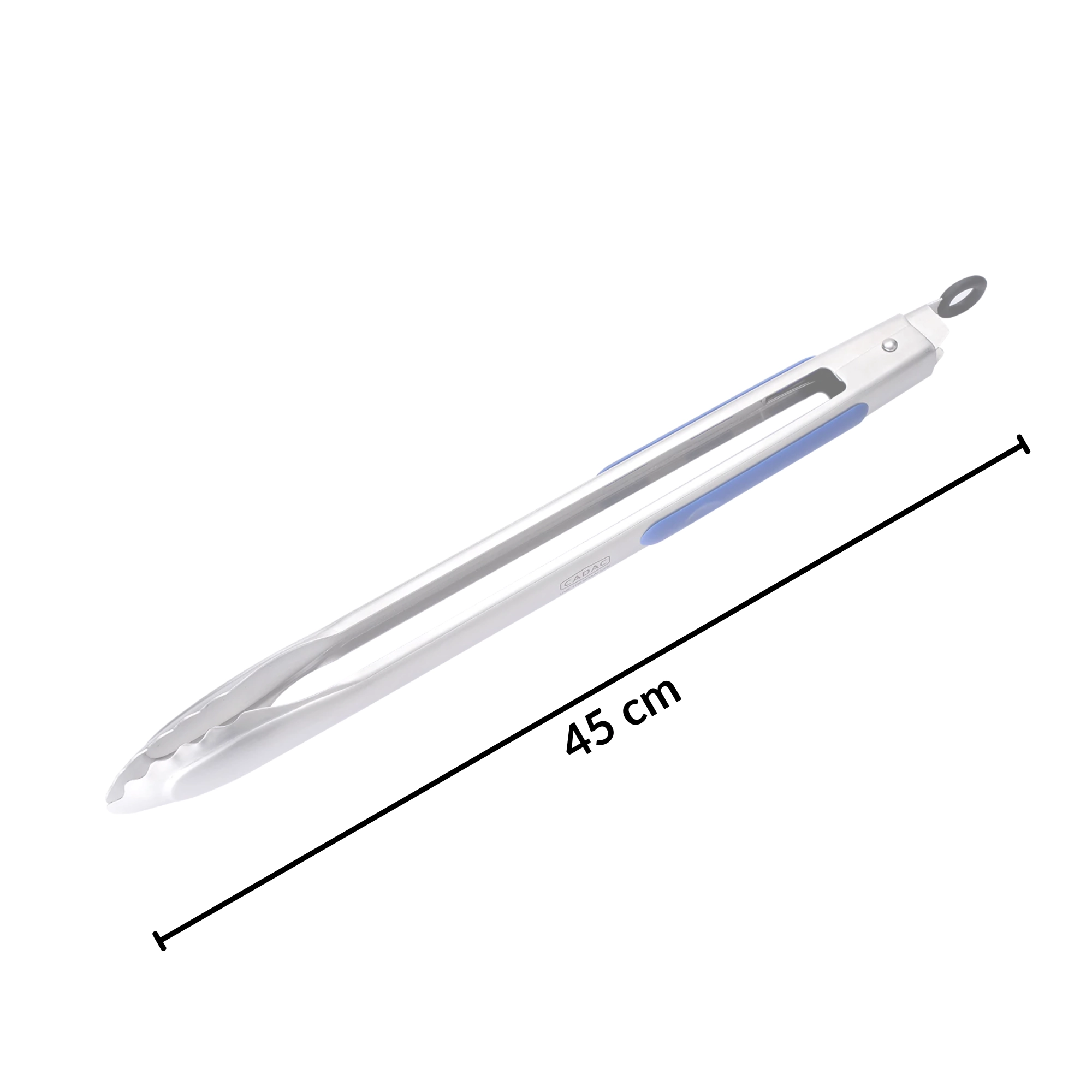 De 45 cm lange tang houdt je handen verder van de hitte, terwijl siliconen inlays zorgen voor een antislip en comfortabele grip.