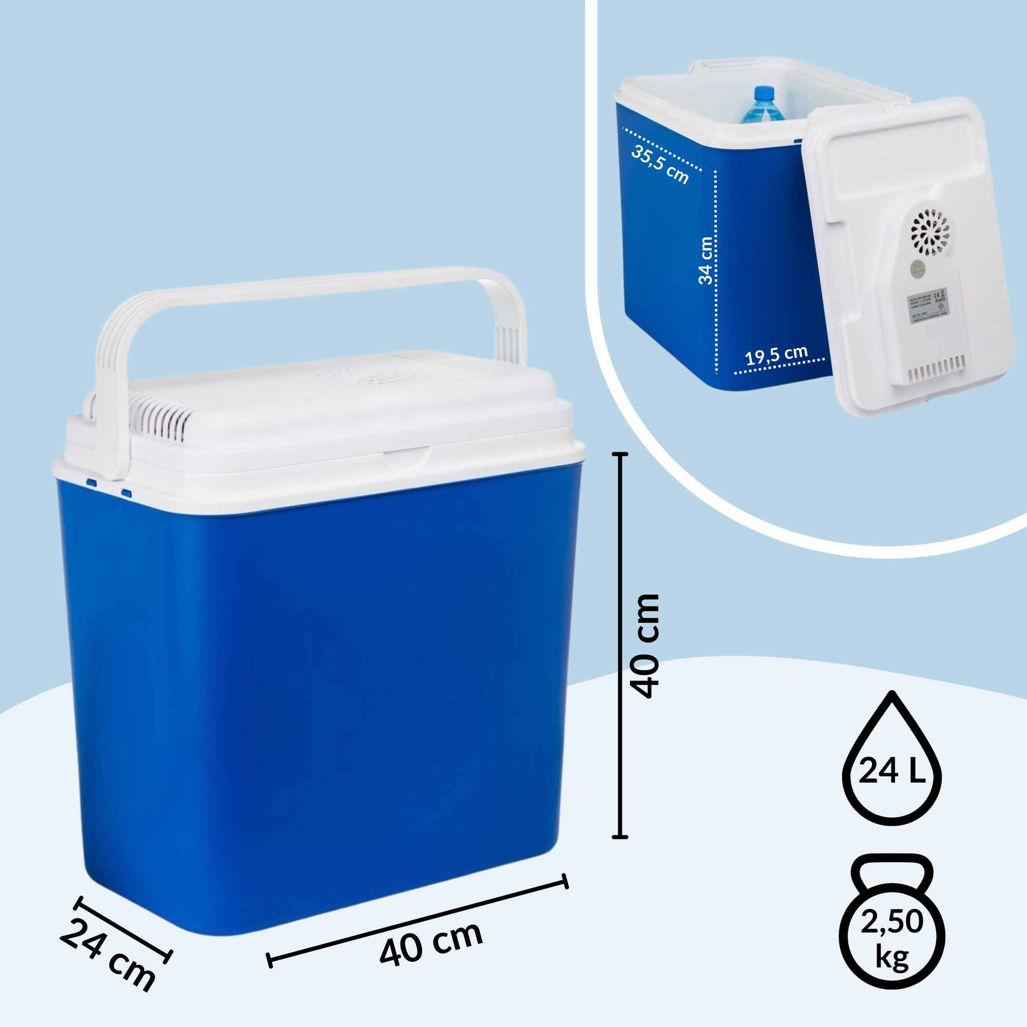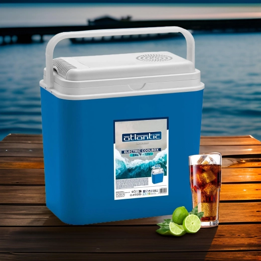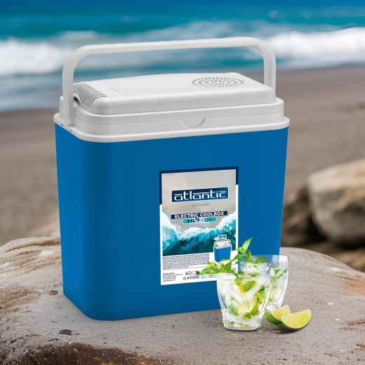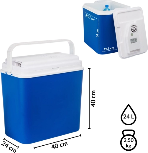 Compacte elektrische auto-koelbox met een inhoud van 24 l voor voeding via de 12V-autostekker, ideaal voor op reis, kamperen en picknicks. Dankzij het thermo-elektrische Peltier-element houdt hij betrouwbaar een lage temperatuur aan zonder schadelijke chemicaliën, en de hoogwaardige isolatie houdt de inhoud koel, zelfs na het loskoppelen van de stroom. Een praktische inklapbare draaggreep, stevige constructie en eenvoudig onderhoud maken hem tot een geweldige metgezel voor elk avontuur.