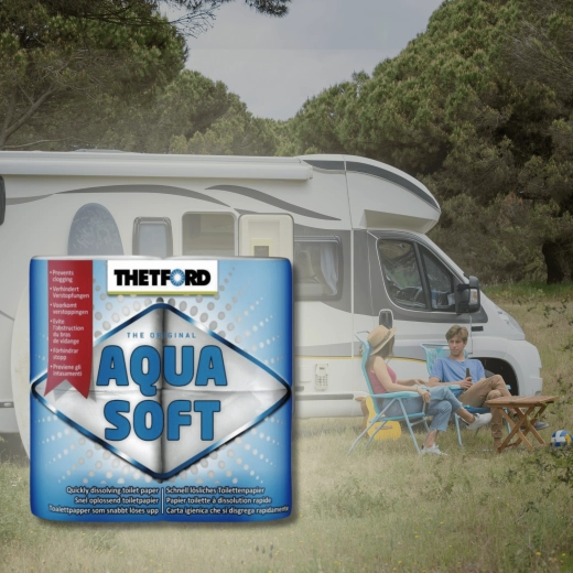 Geniet van thuiscomfort, ook onderweg. THETFORD Aqua Soft toiletpapier is speciaal ontwikkeld voor draagbare en ingebouwde chemische toiletten in campers, caravans of boten. Het is zeer zacht aan de aanraking en breekt snel af in de vuilwatertank, zodat het toilet niet verstopt en het onderhoud zo eenvoudig mogelijk is.