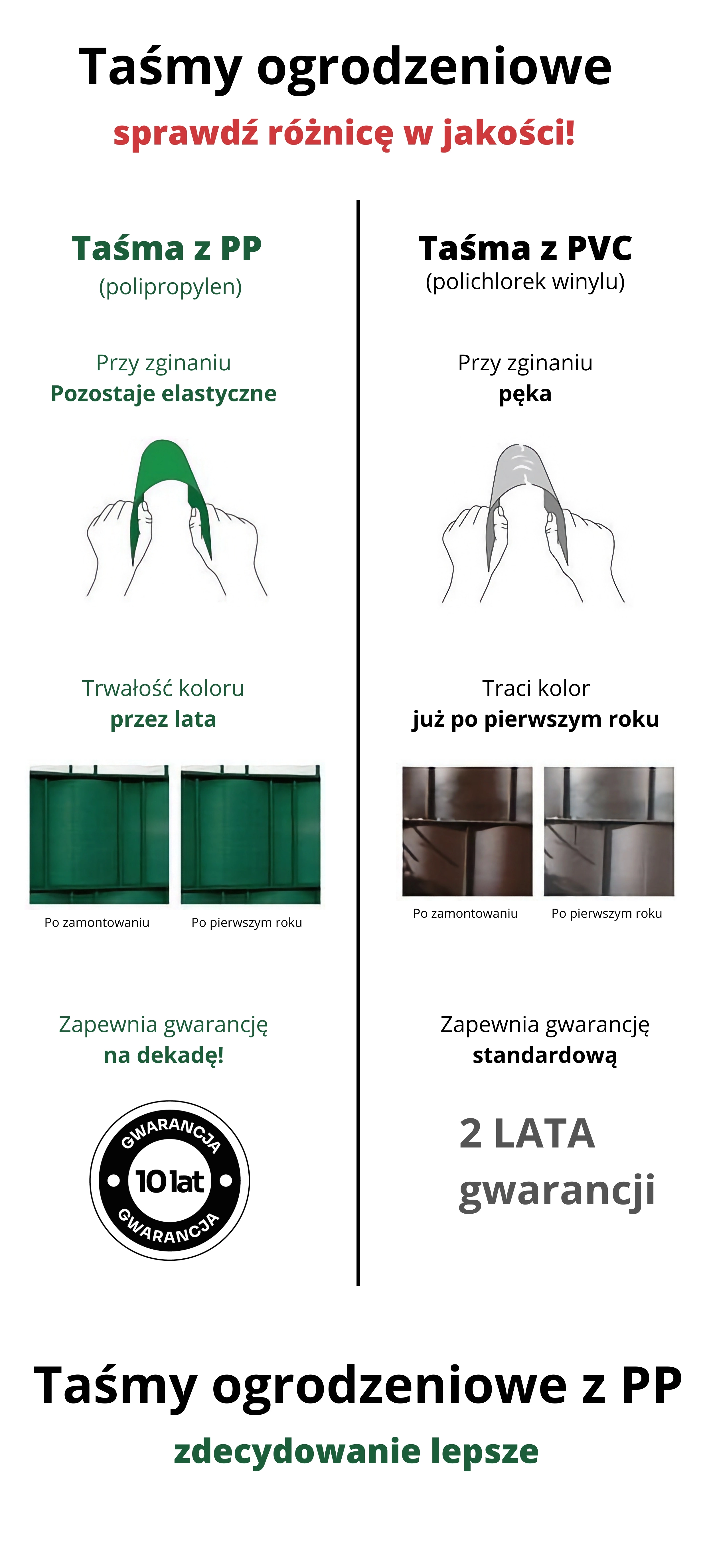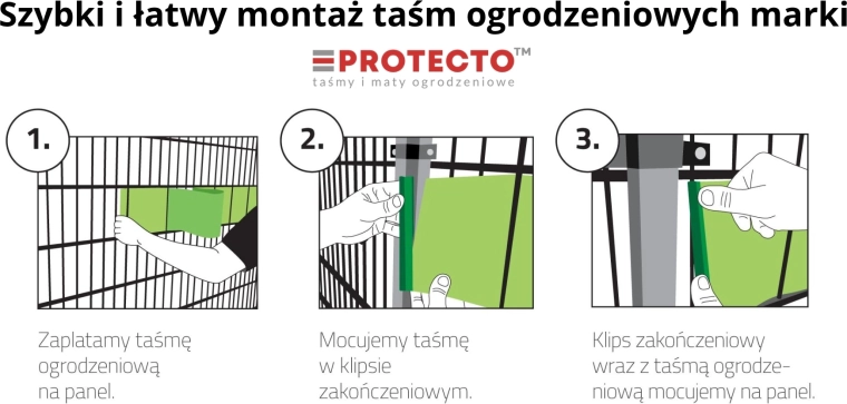 Elke band heeft een exacte lengte van 2,55 m voor één rij van het paneel. Gewoon door het hek weven en klaar – de ideale oplossing voor een snelle en schone installatie.