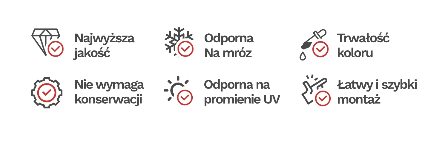 - Duurzaamheid – UV-stabilisatie, bestand tegen regen, sneeuw, vorst en temperatuurschommelingen.