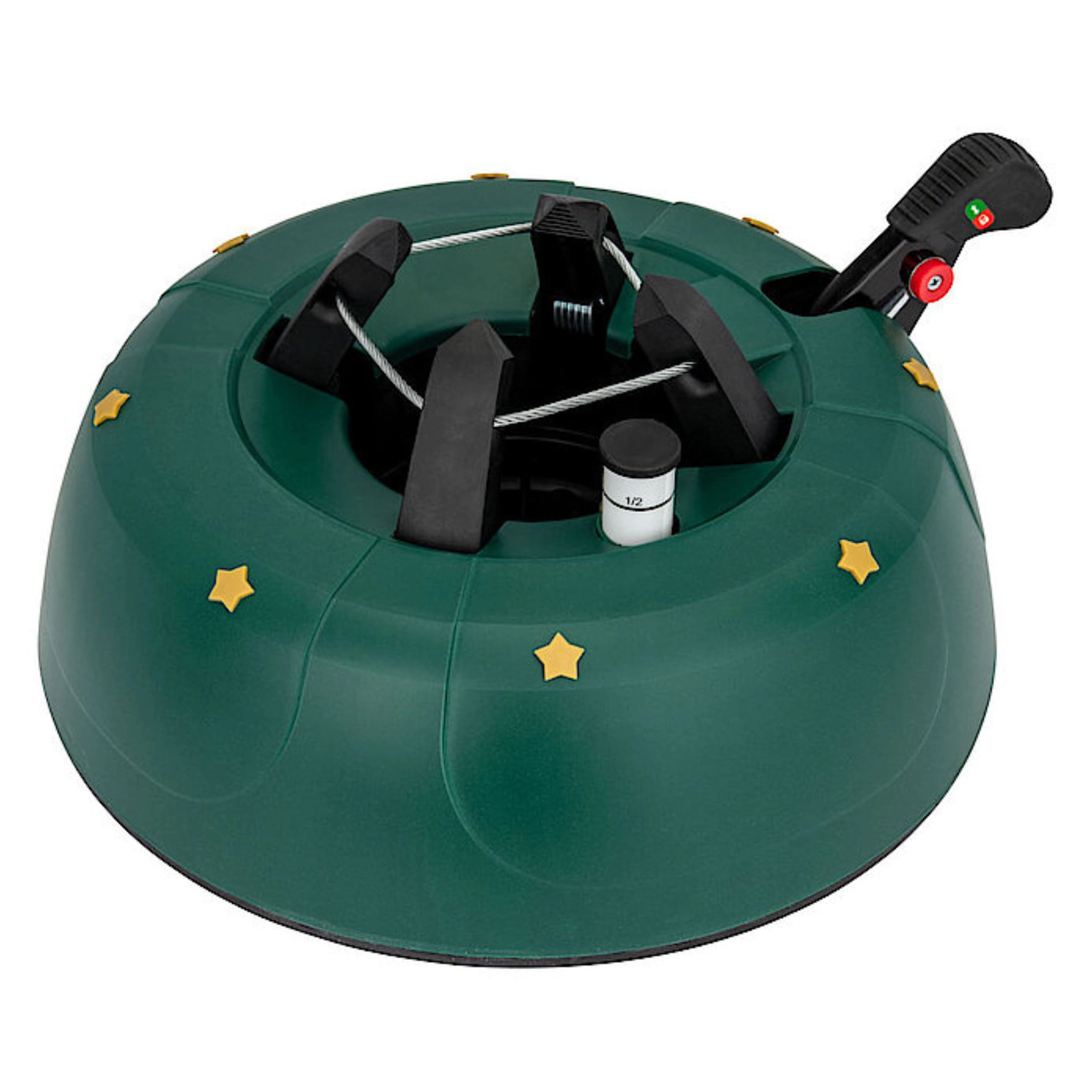 Het grote waterreservoir met vlotterindicator houdt de boom gehydrateerd en helpt naalduitval te beperken.