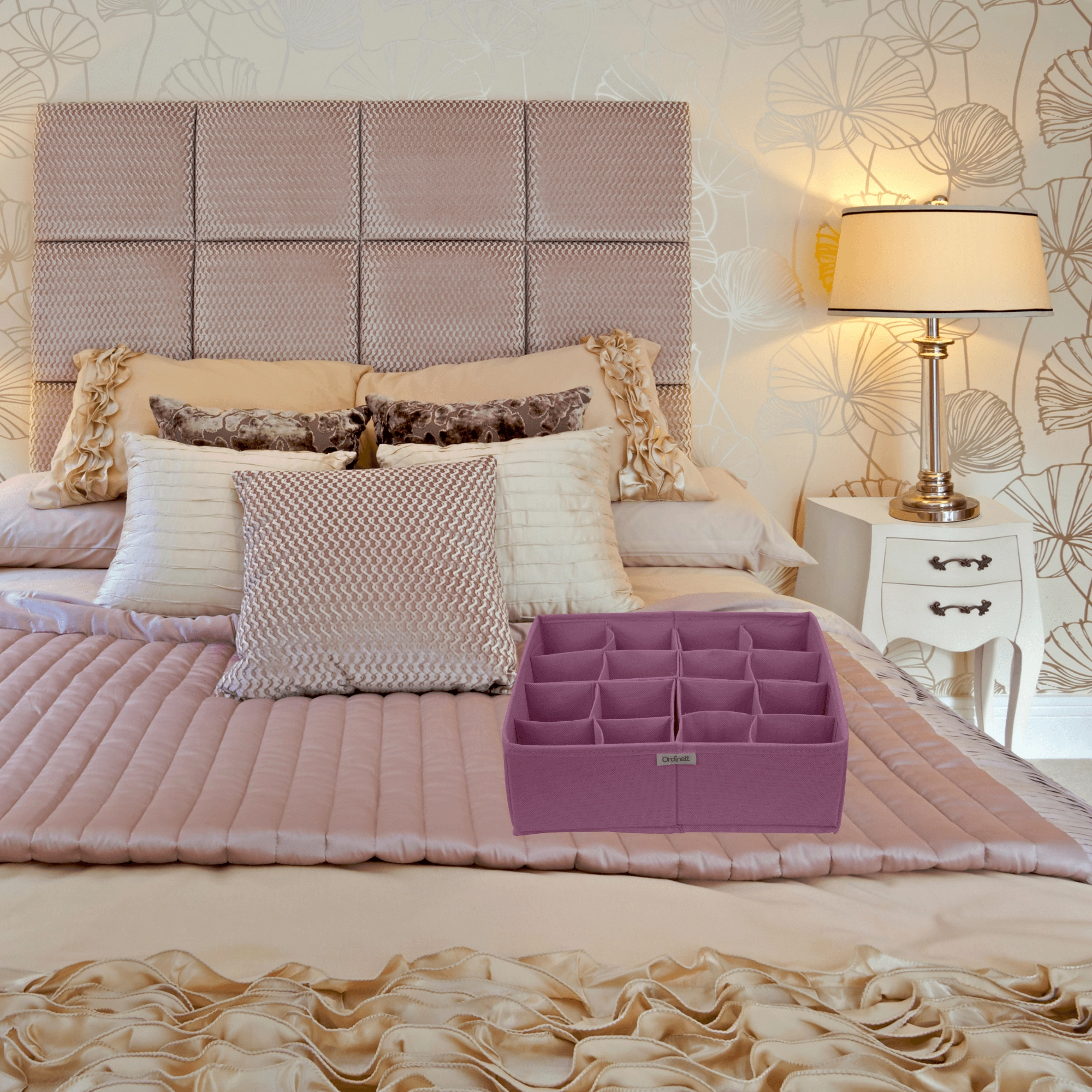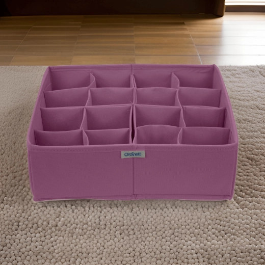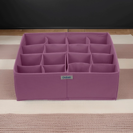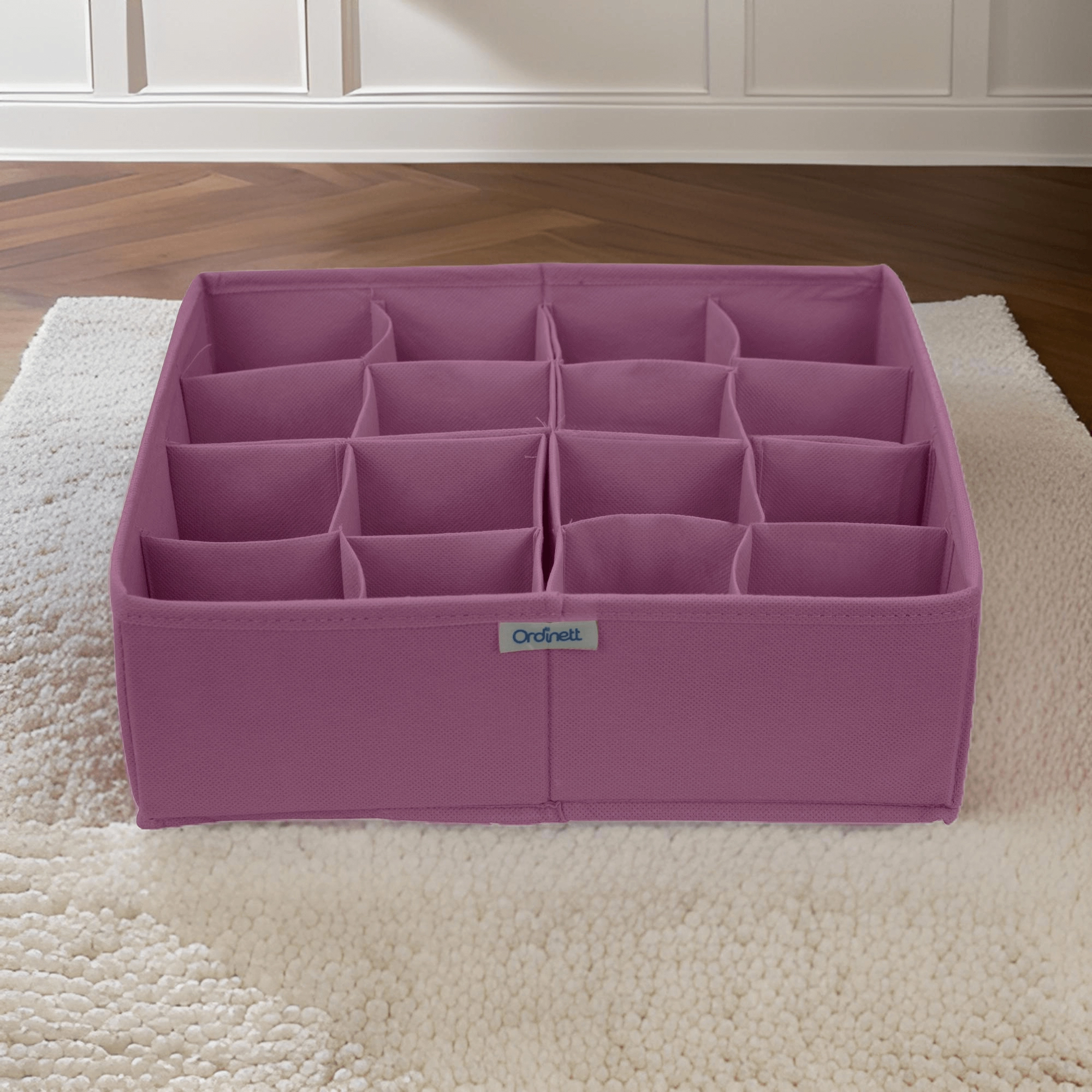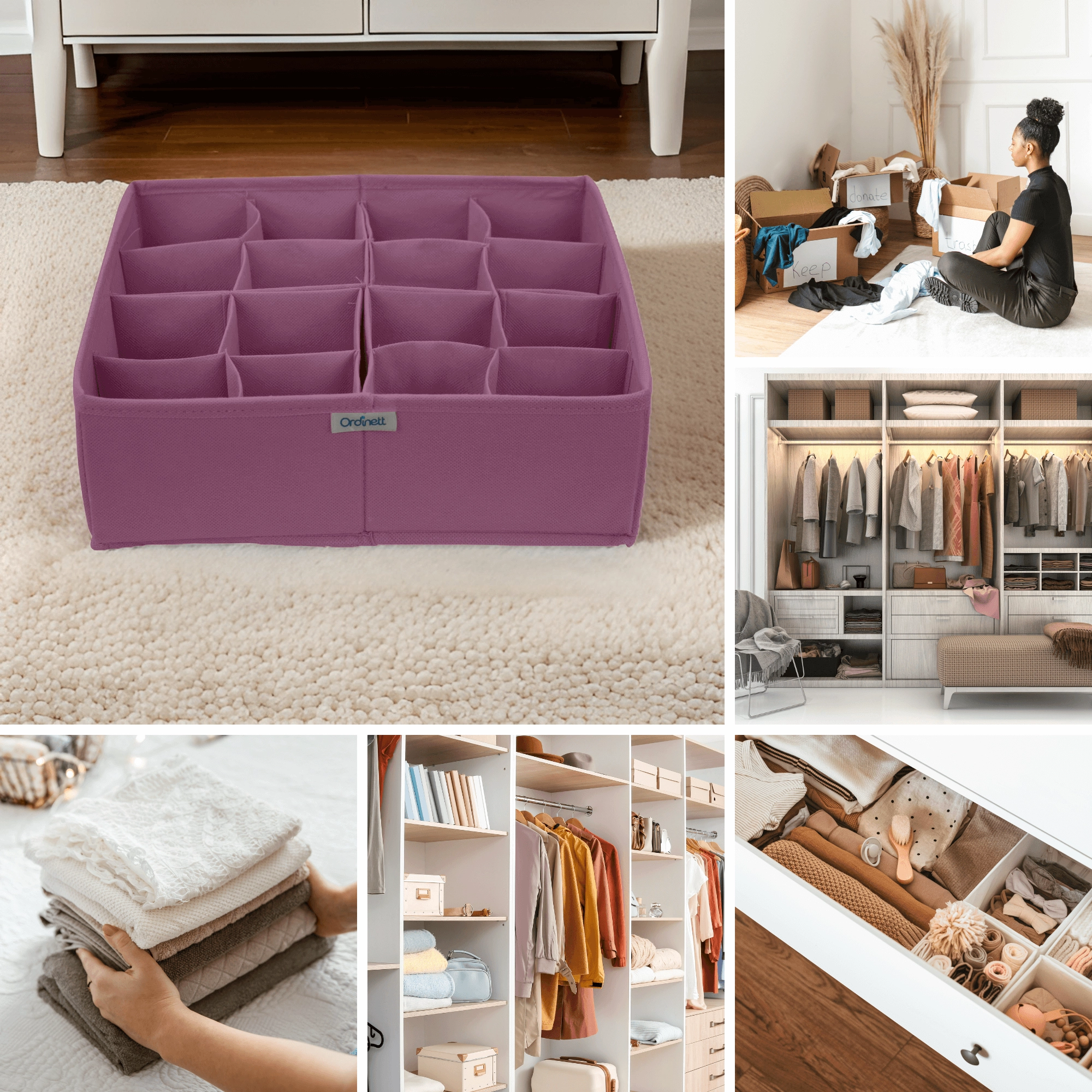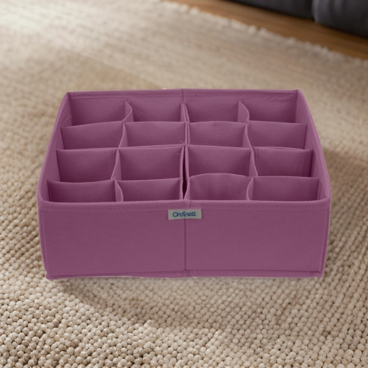 Het raster met 16 compartimenten houdt sokken, ondergoed en accessoires gescheiden, zodat je altijd snel vindt wat je nodig hebt.