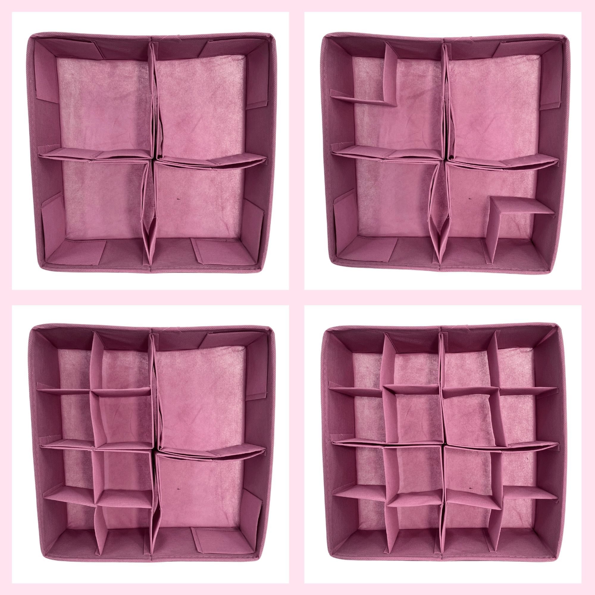 Blossom textiele lade-organizer 30,5 × 30,5 × 10 cm, 16 vakken, roze