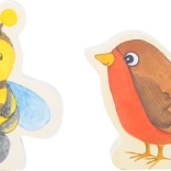 Interactieve figuurtjes van een bijtje en een vogeltje